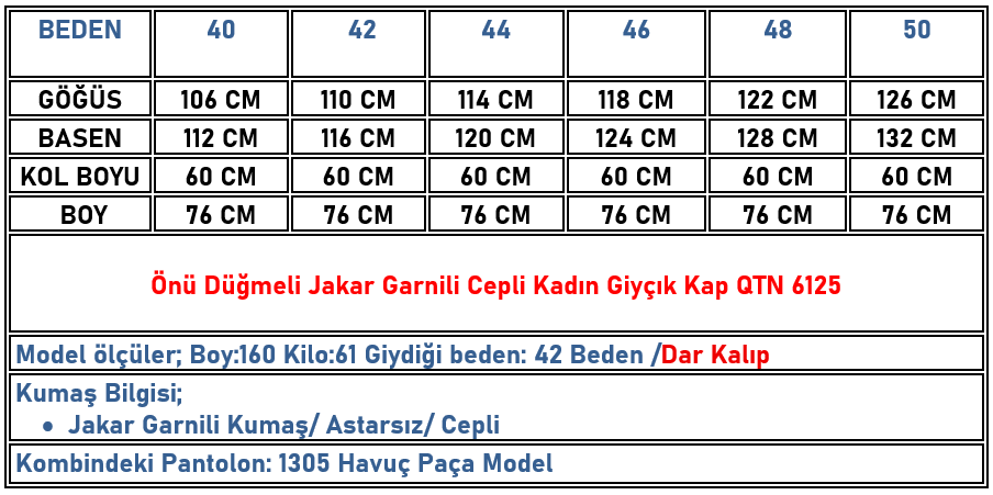 Önü Düğmeli Jakar Garnili Cepli Kadın Giyçık Kap Antrasit QTN 6125