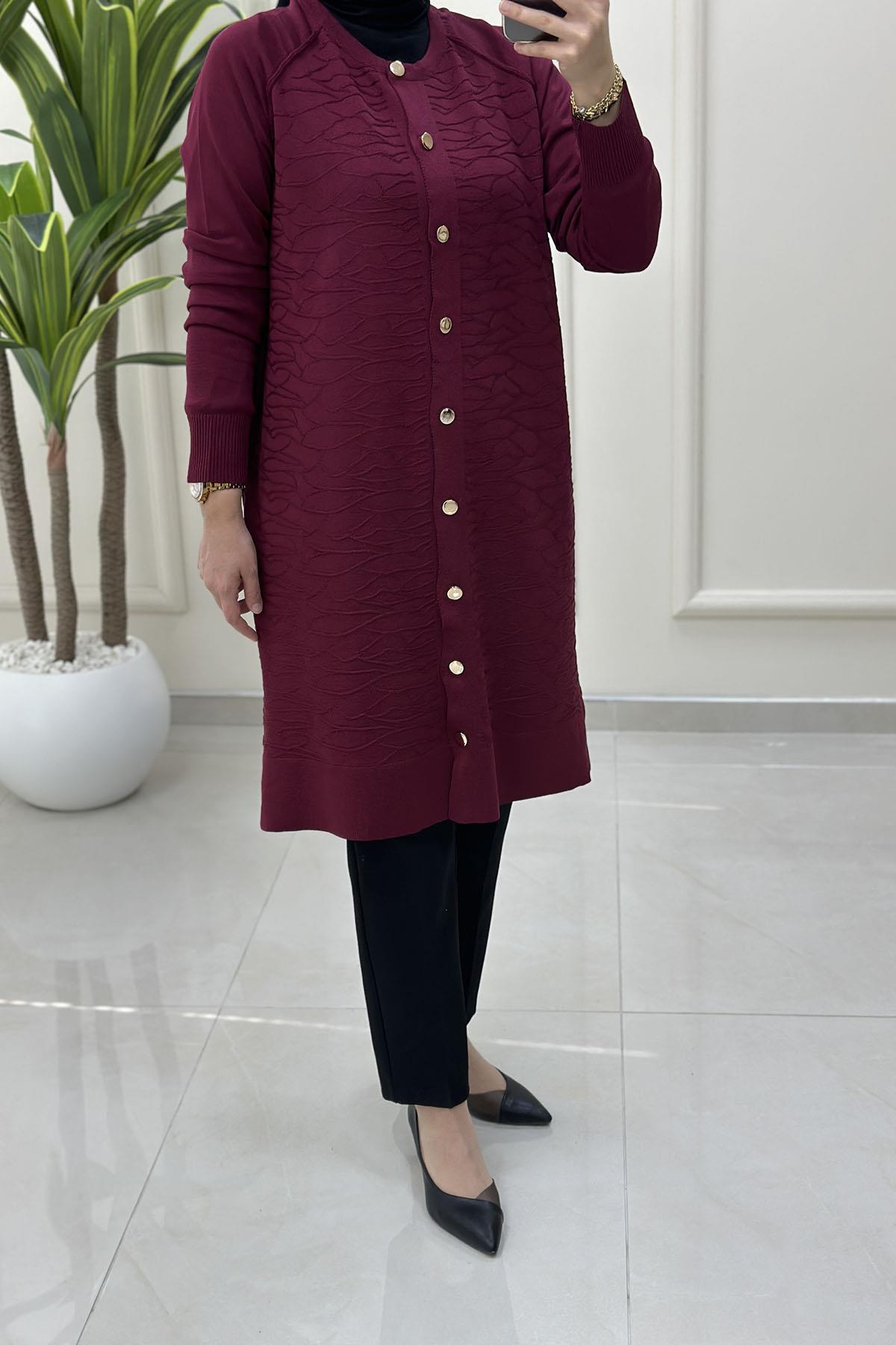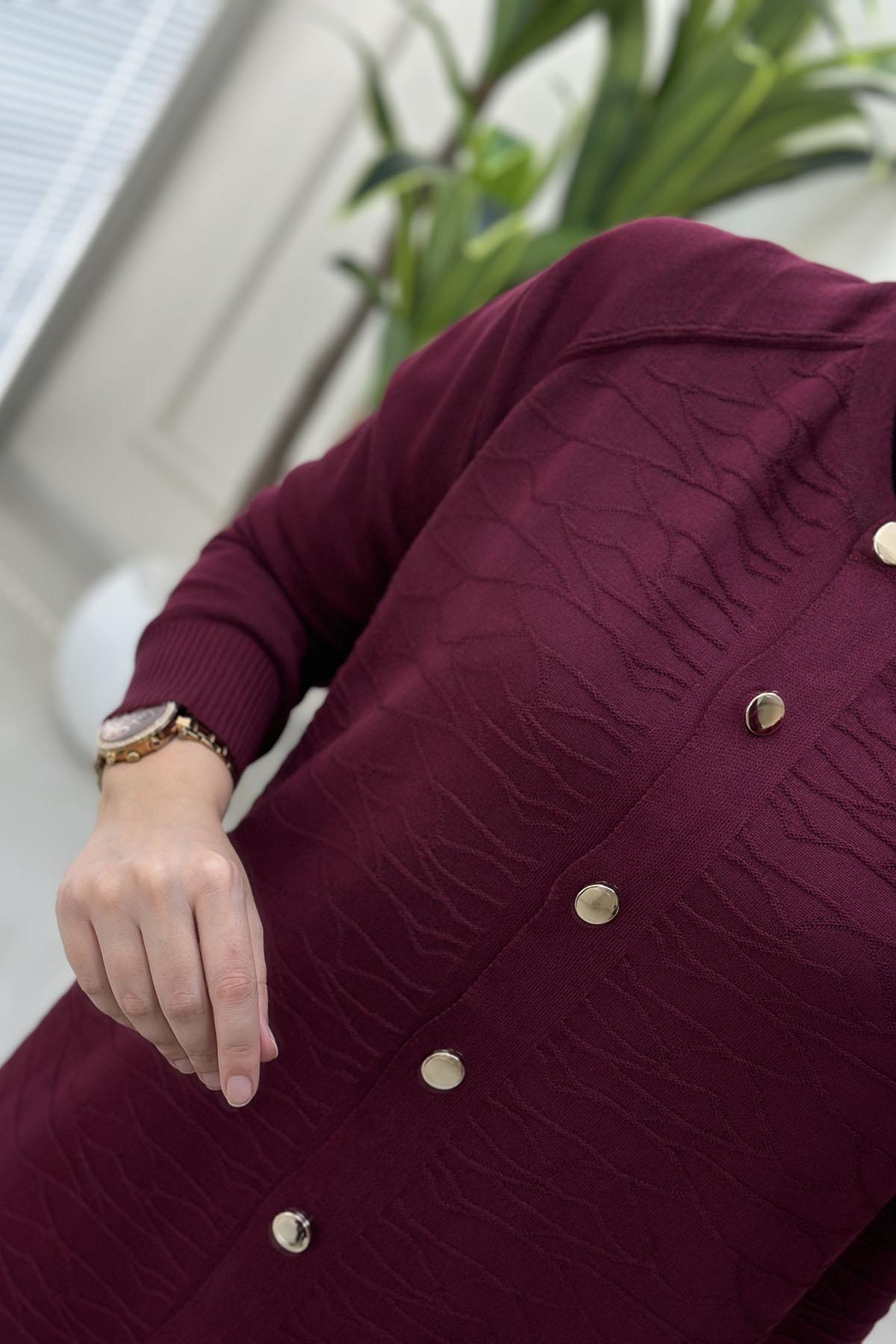 Önü Düğmeli Kendinden Desenli Kadın Hırka Mürdüm KADO 2725306 (KADO-26K2725306)