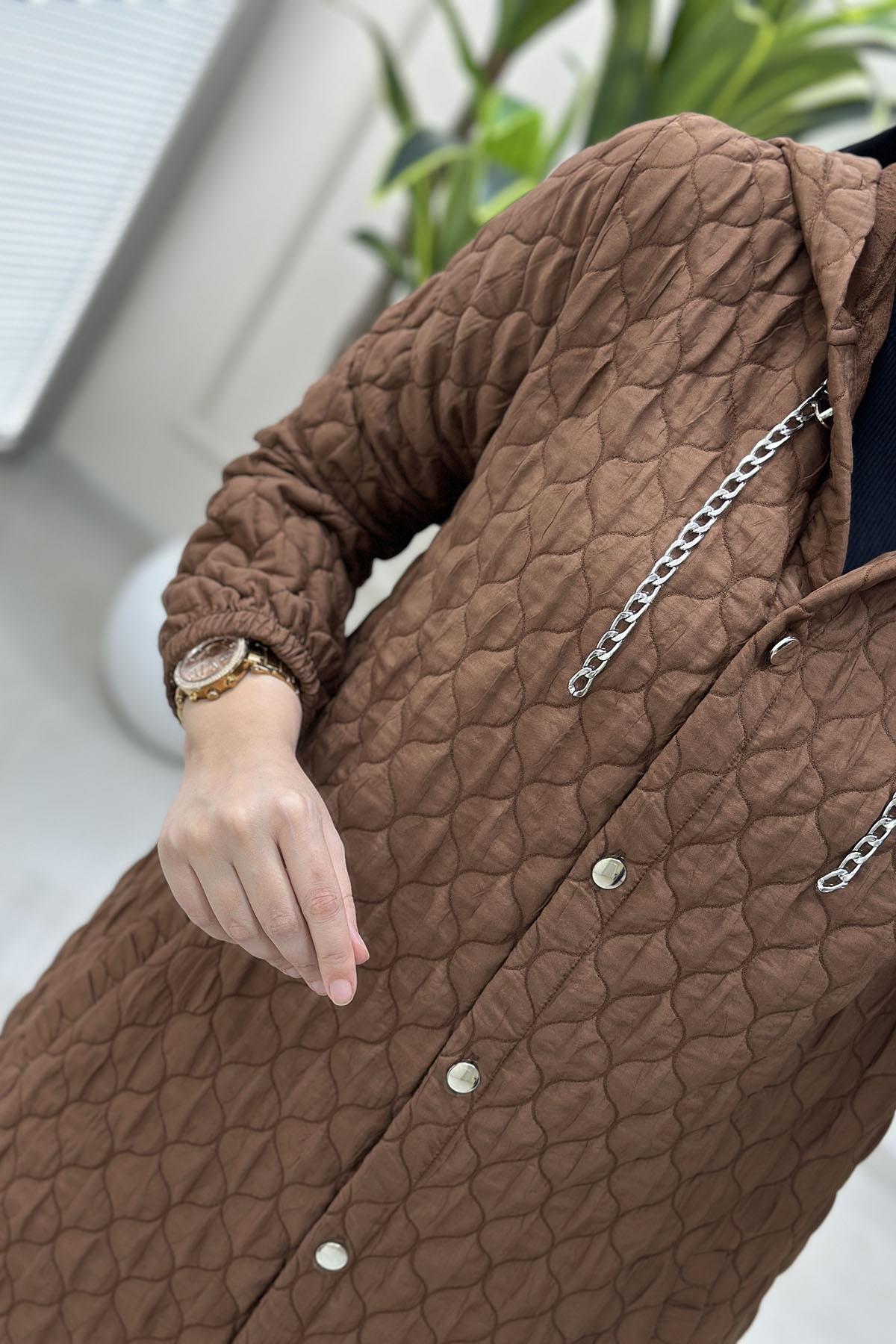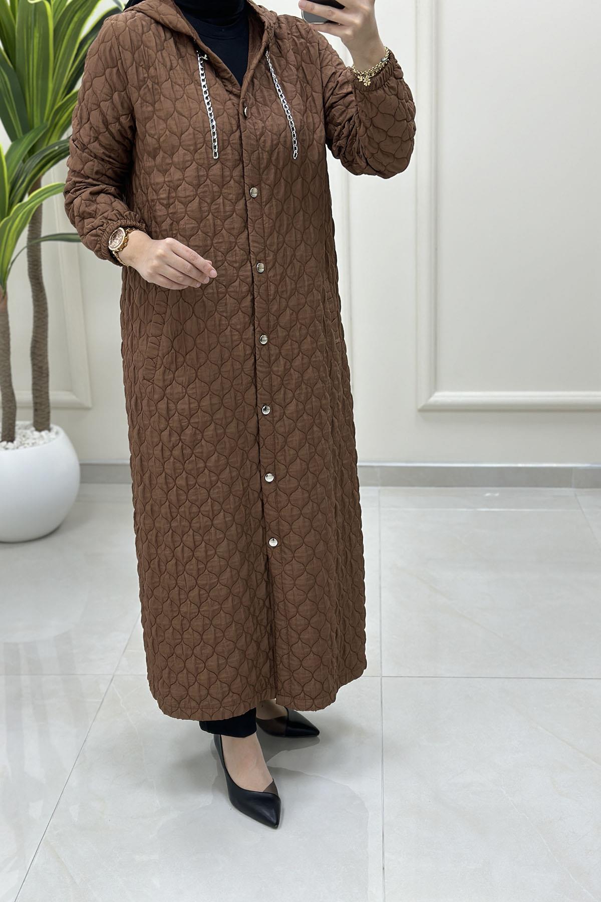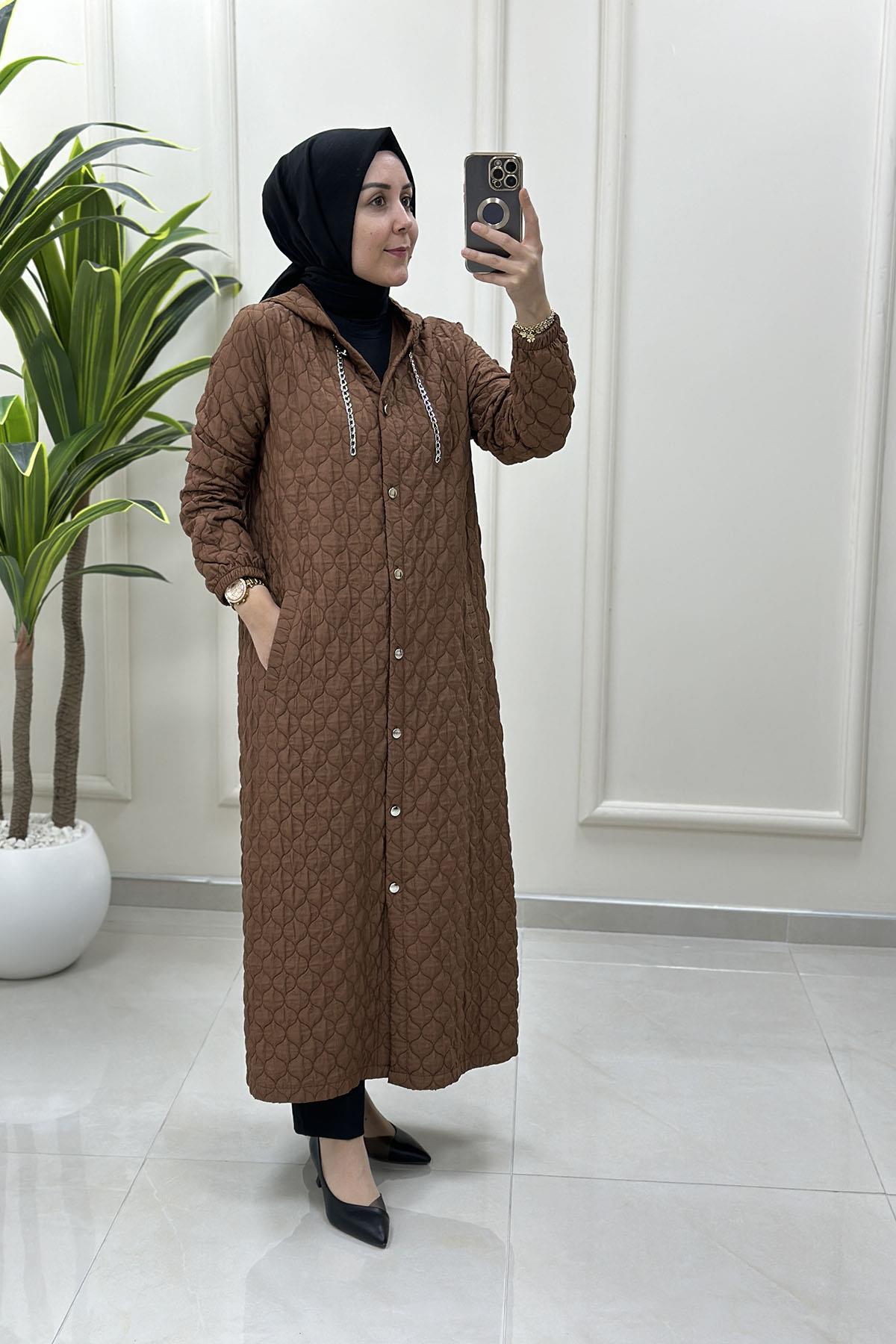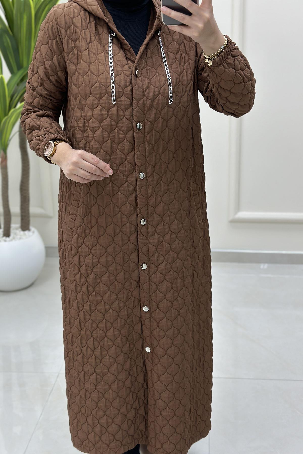 Önü Düğmeli Kolu Lastikli Uzun Kadın Kapitone Kap Taba KADO 257356 (KADO-26K257356)