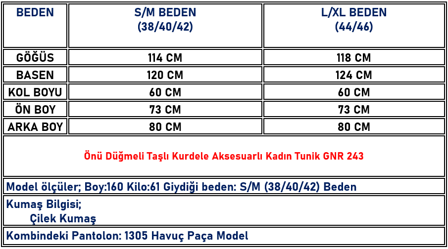 Önü Düğmeli Taşlı Kurdele Aksesuarlı Kadın Tunik Lacivert GNR 243 (GNR-26Y243)