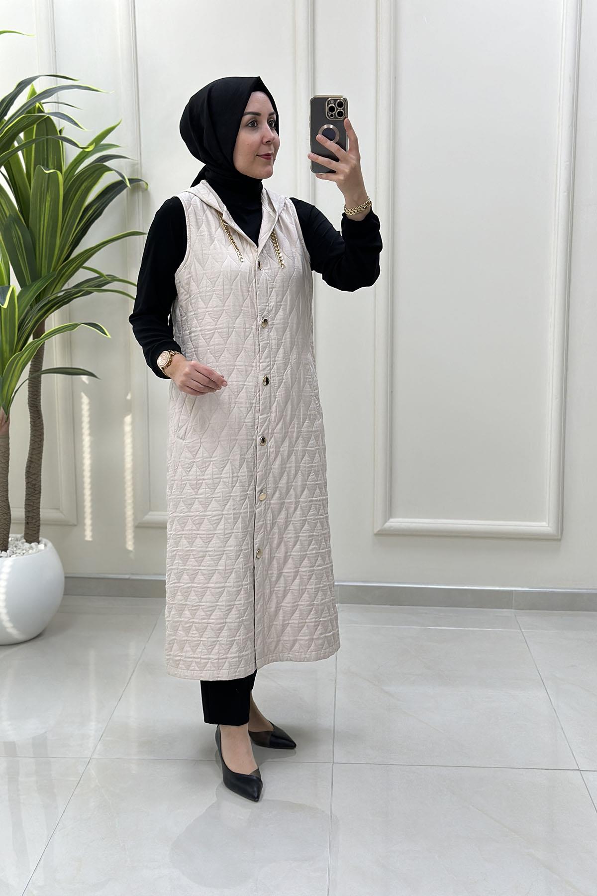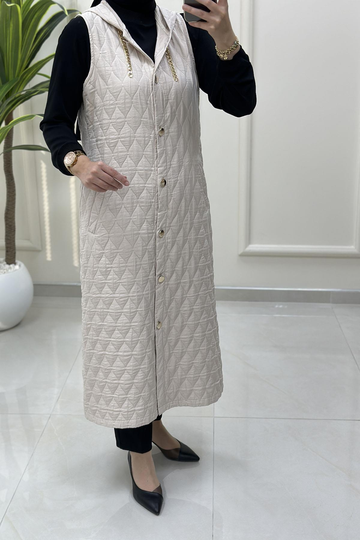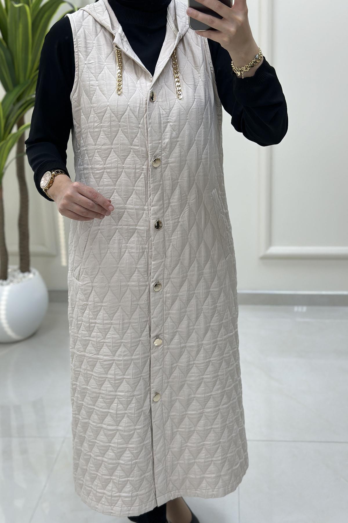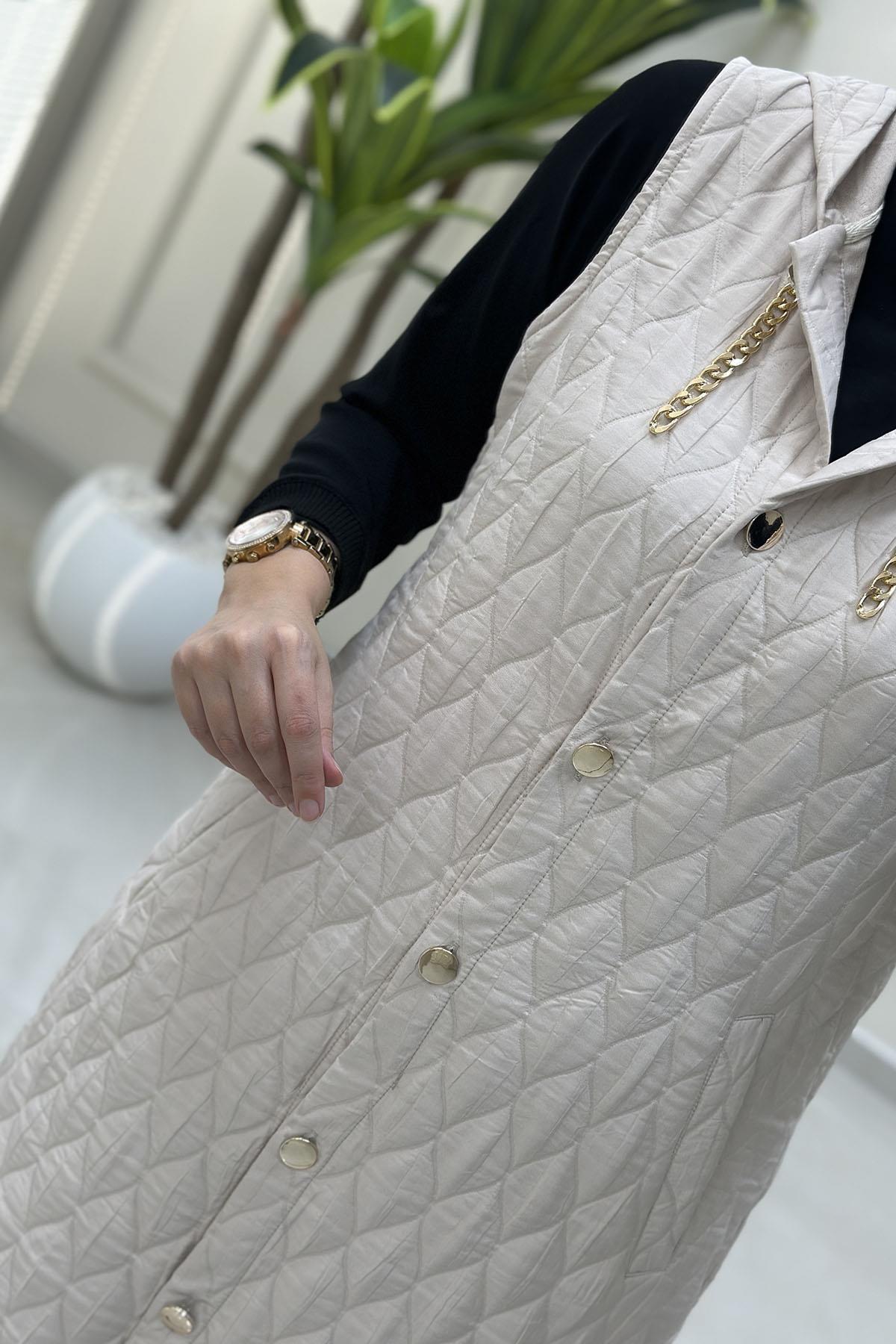 Önü Düğmeli Zincir Detaylı Kadın Kapitone Yelek Bej MP 2623 (MP-26K2623)