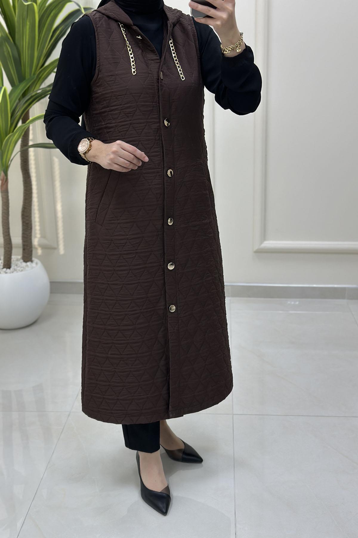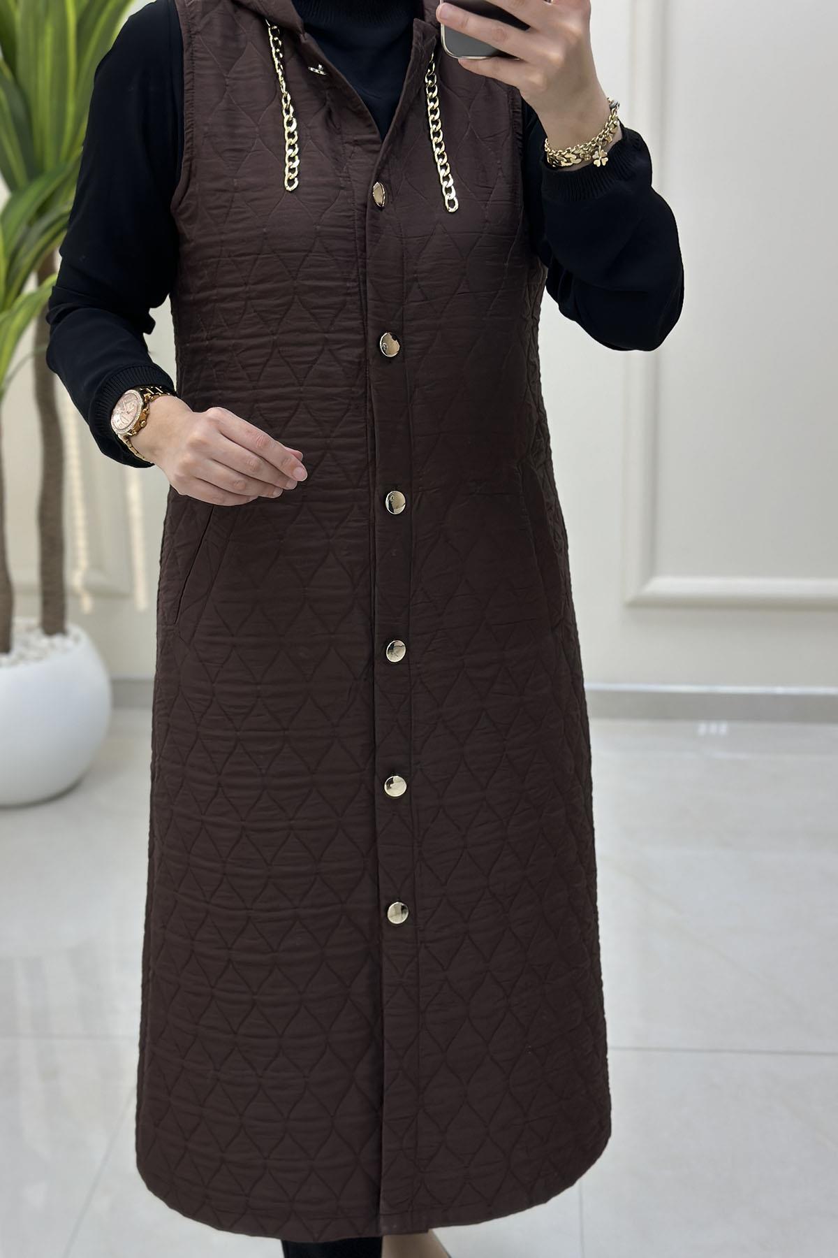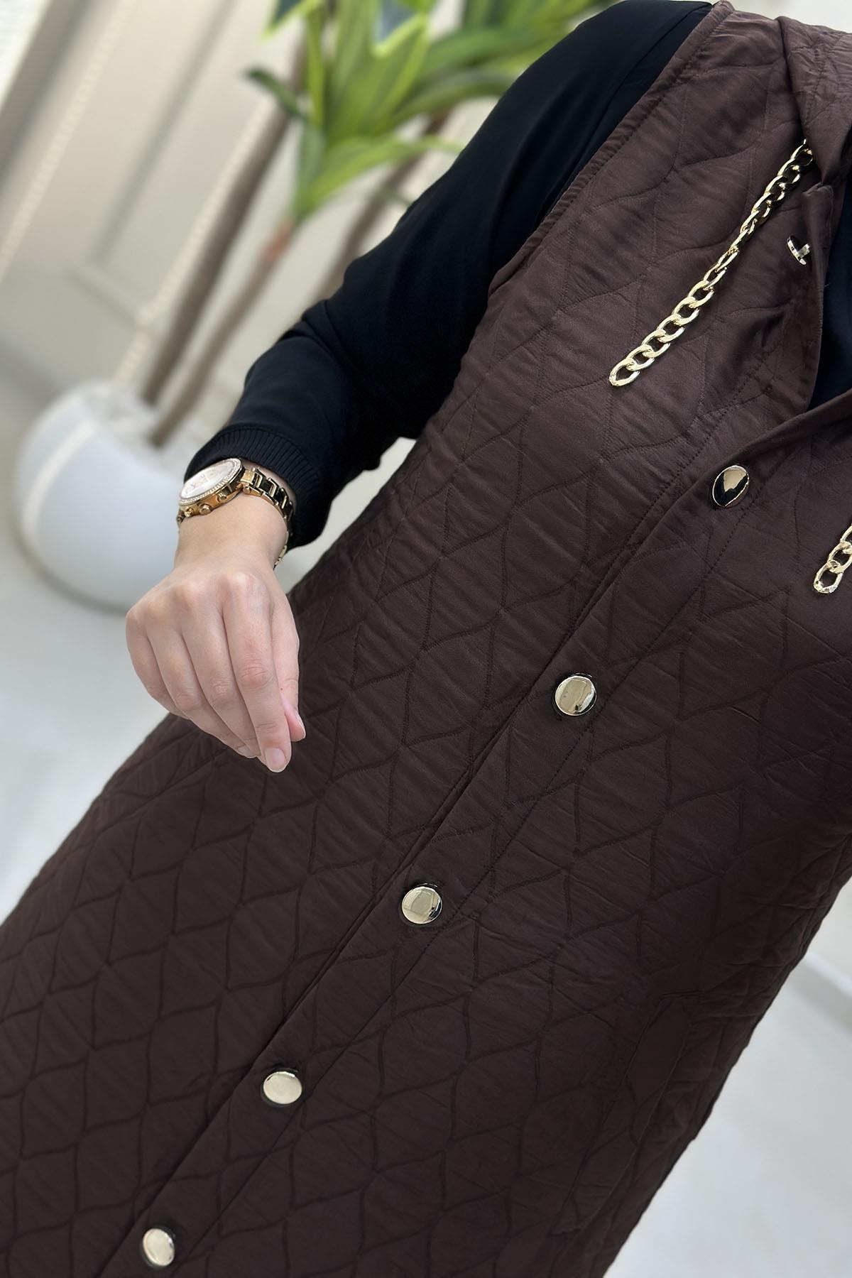 Önü Düğmeli Zincir Detaylı Kadın Kapitone Yelek Kahverengi MP 2623 (MP-26K2623)