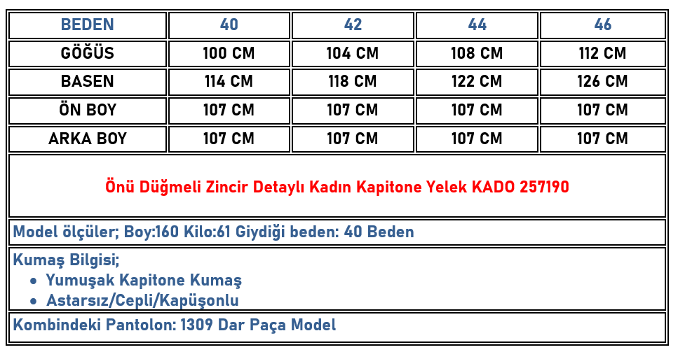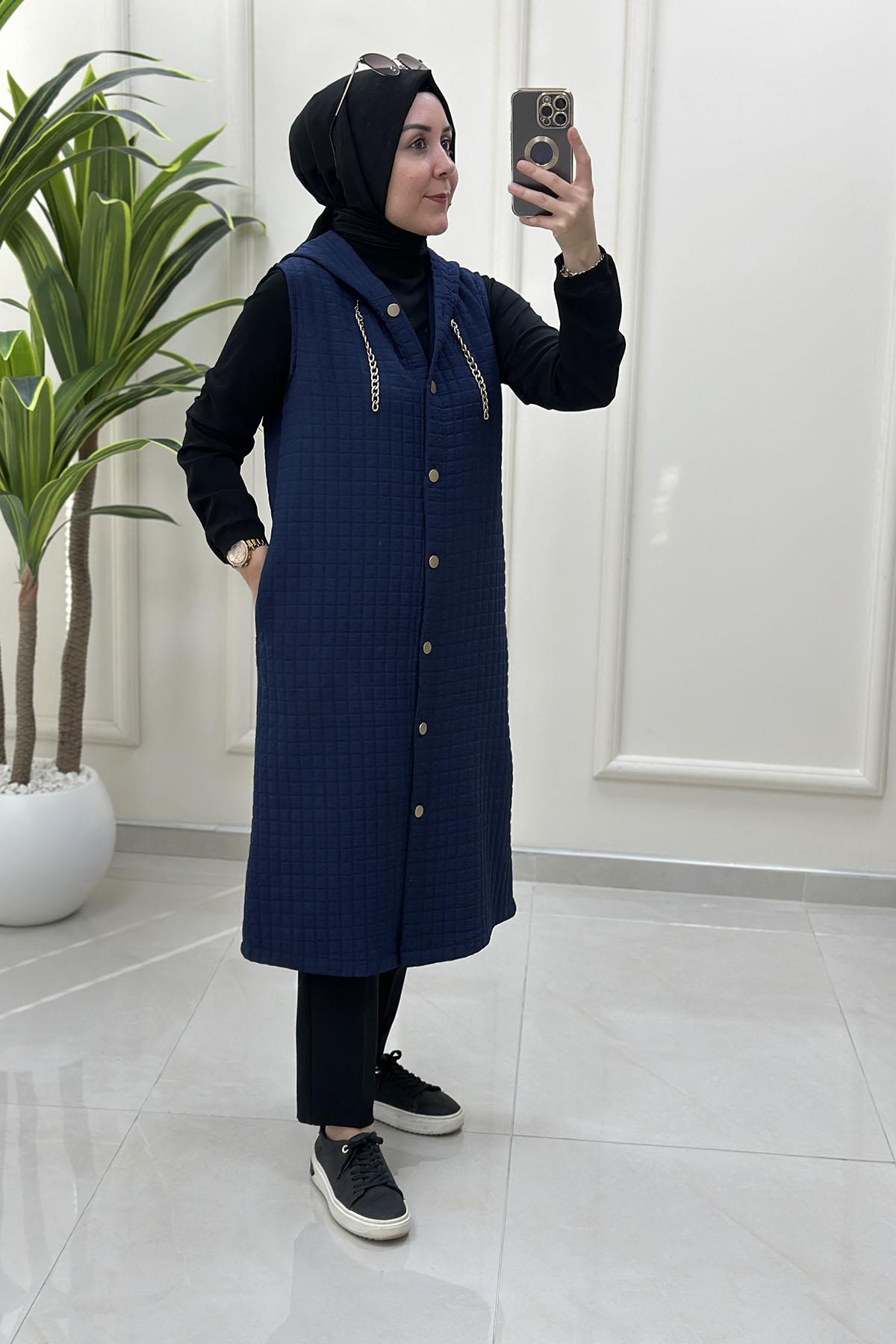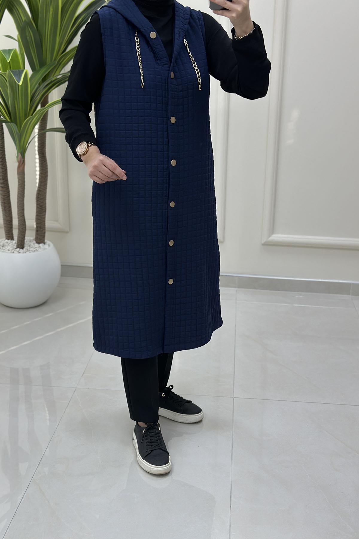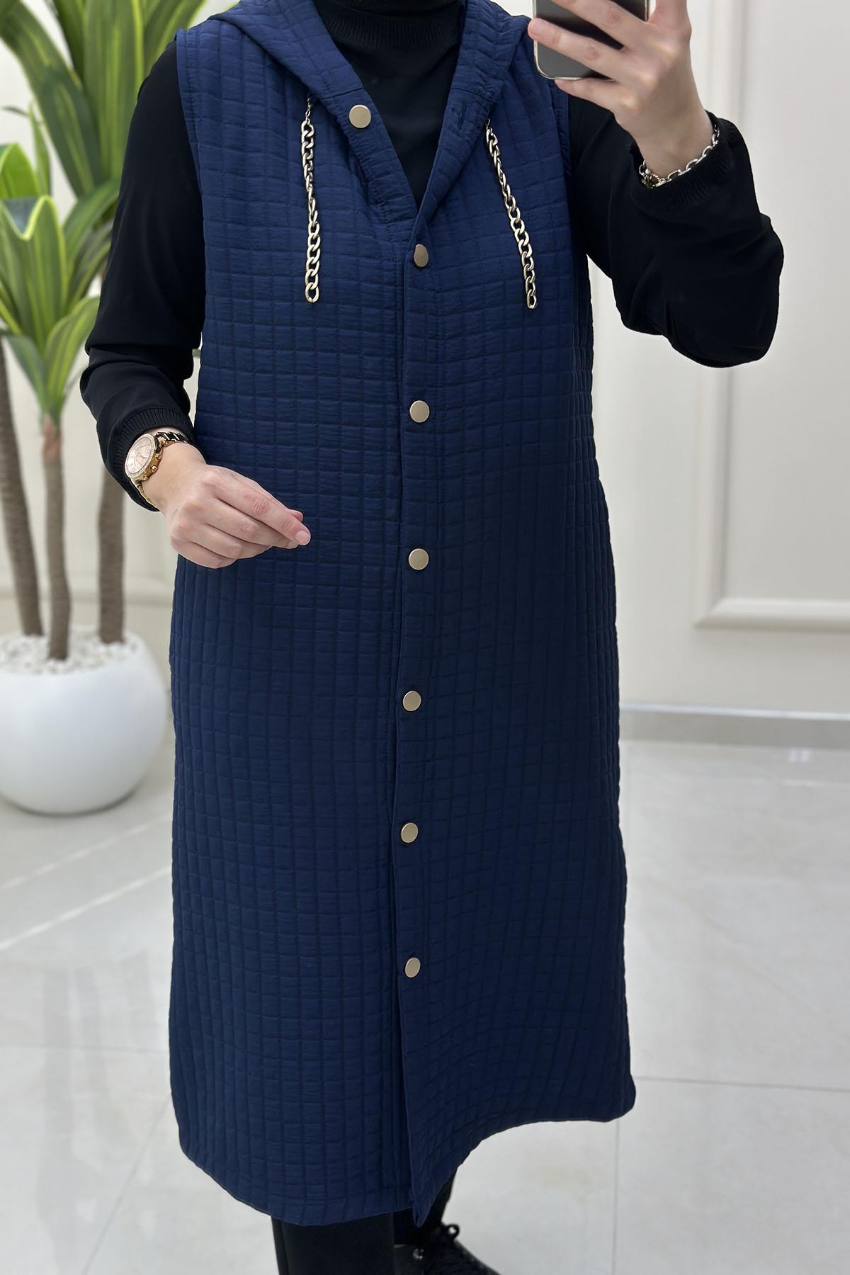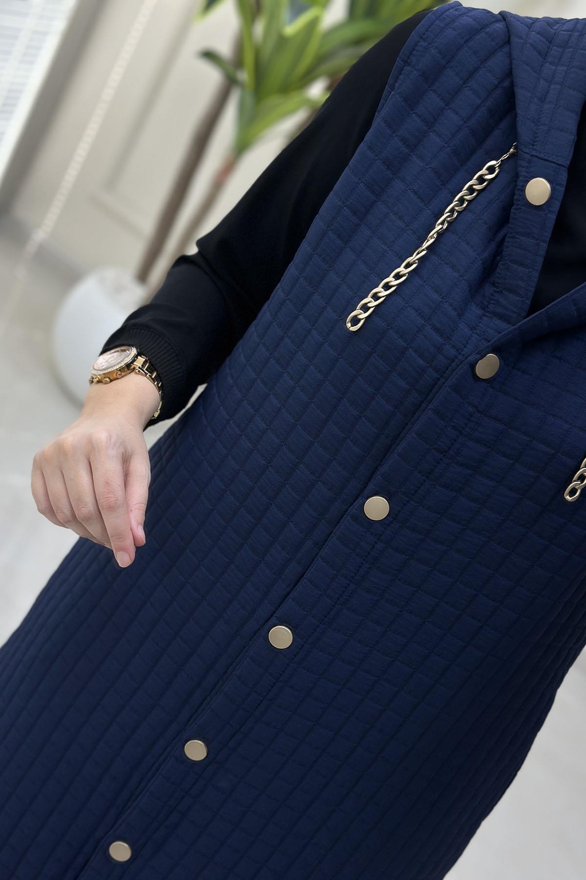 Önü Düğmeli Zincir Detaylı Kadın Kapitone Yelek Lacivert KADO 257190 (KADO-26K257190)