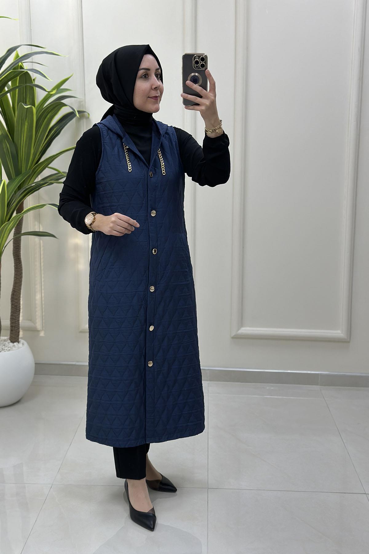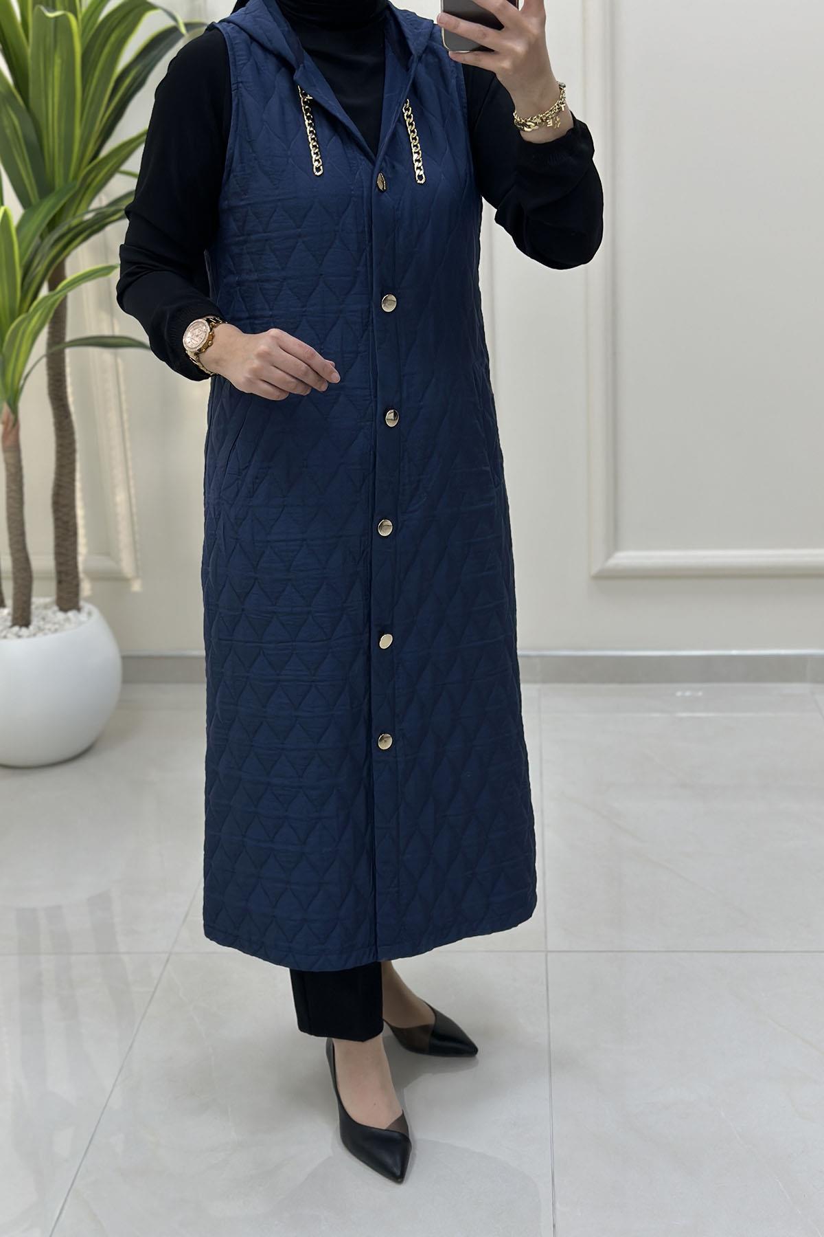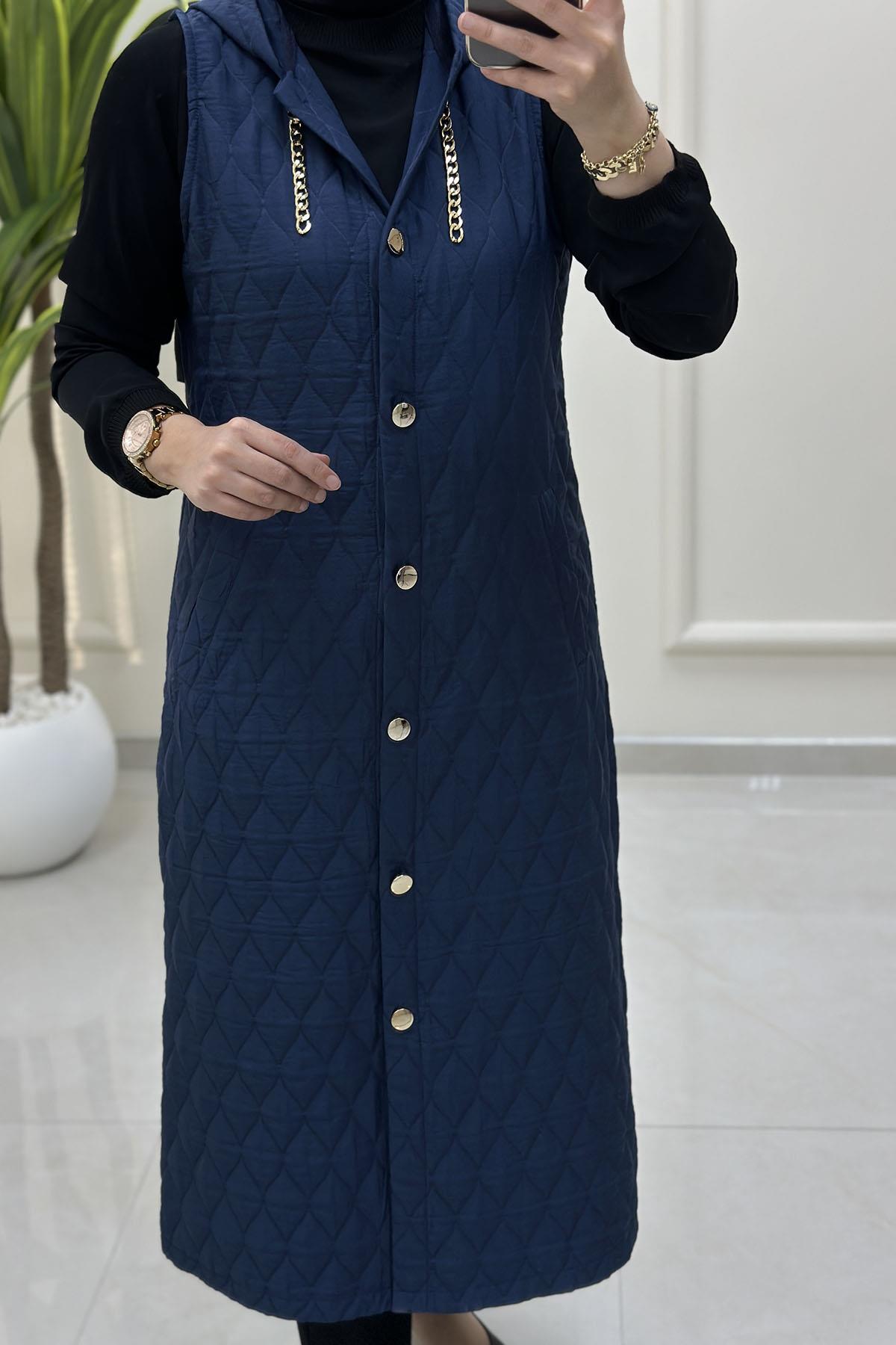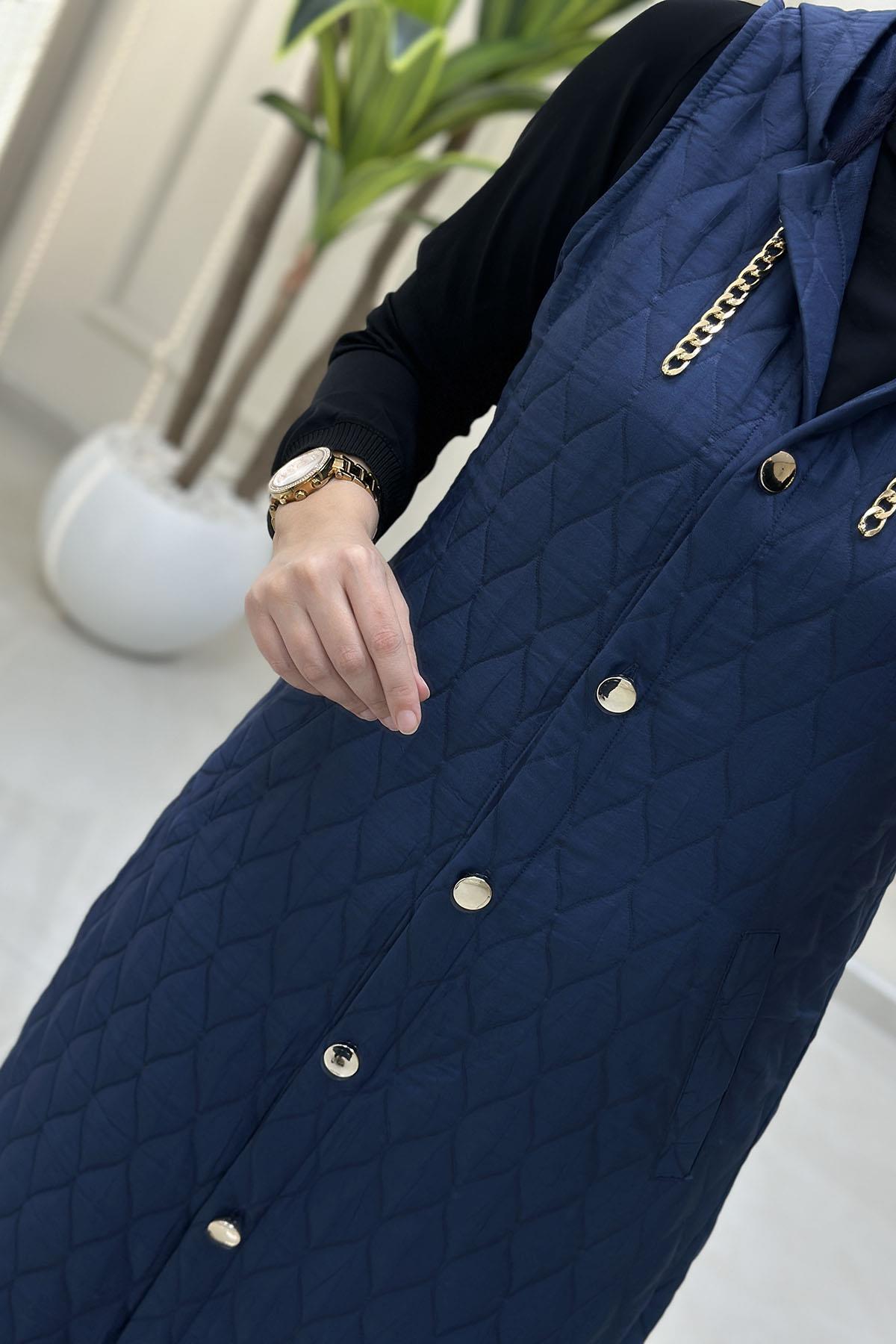 Önü Düğmeli Zincir Detaylı Kadın Kapitone Yelek Lacivert MP 2623 (MP-26K2623)