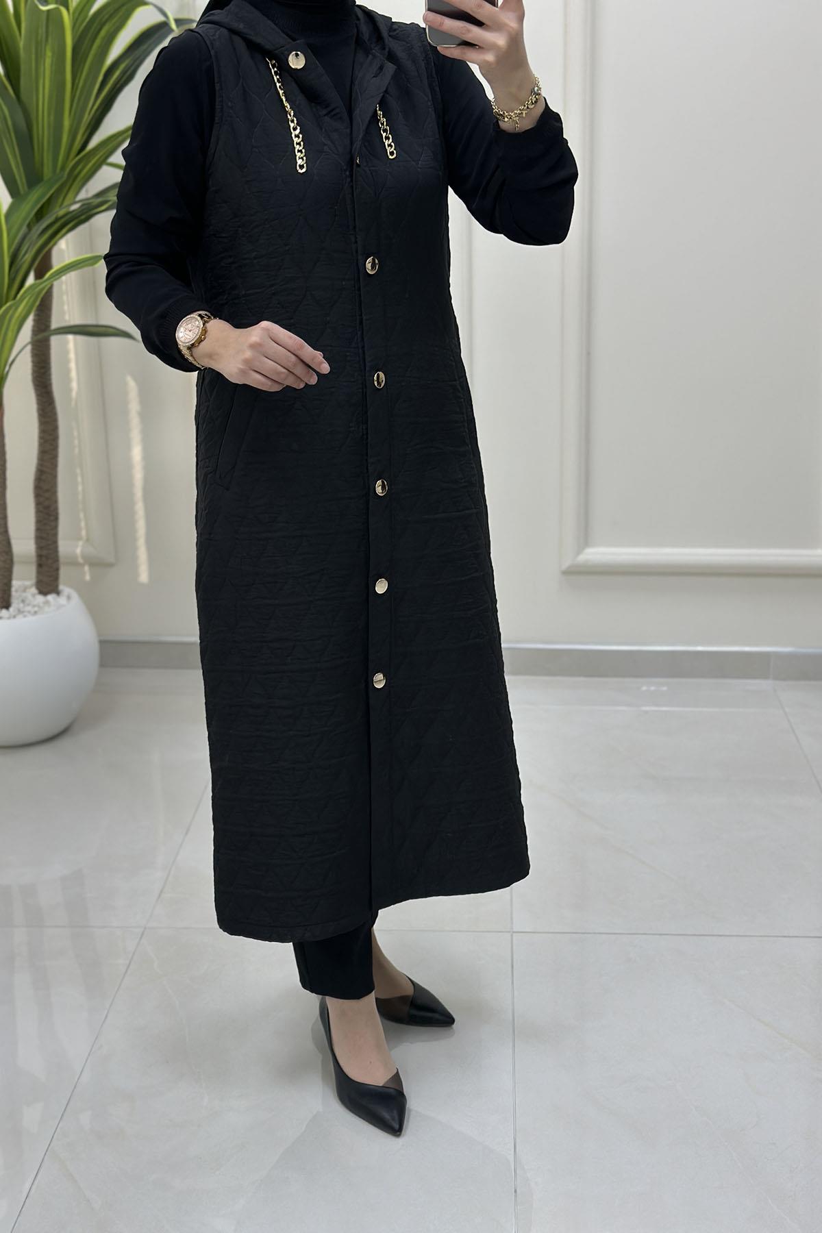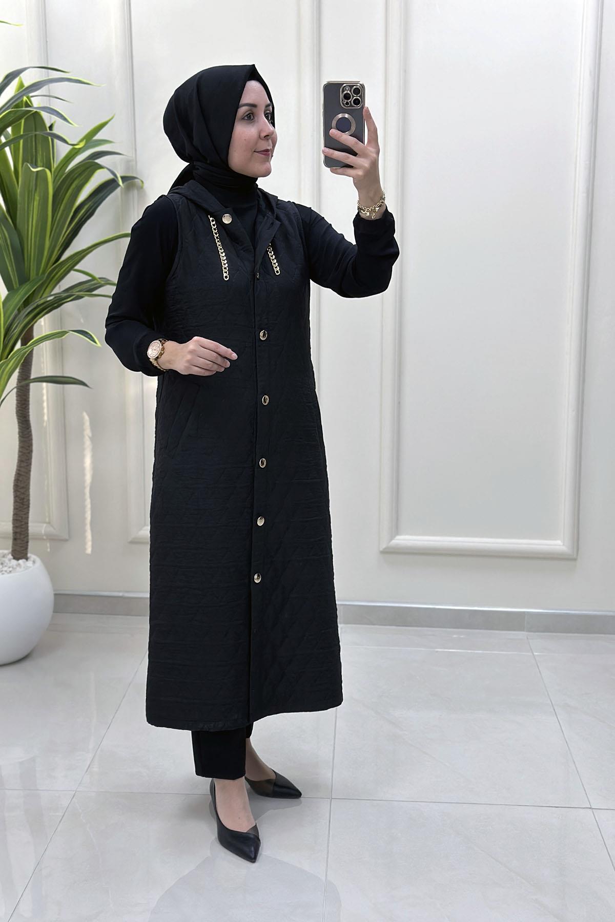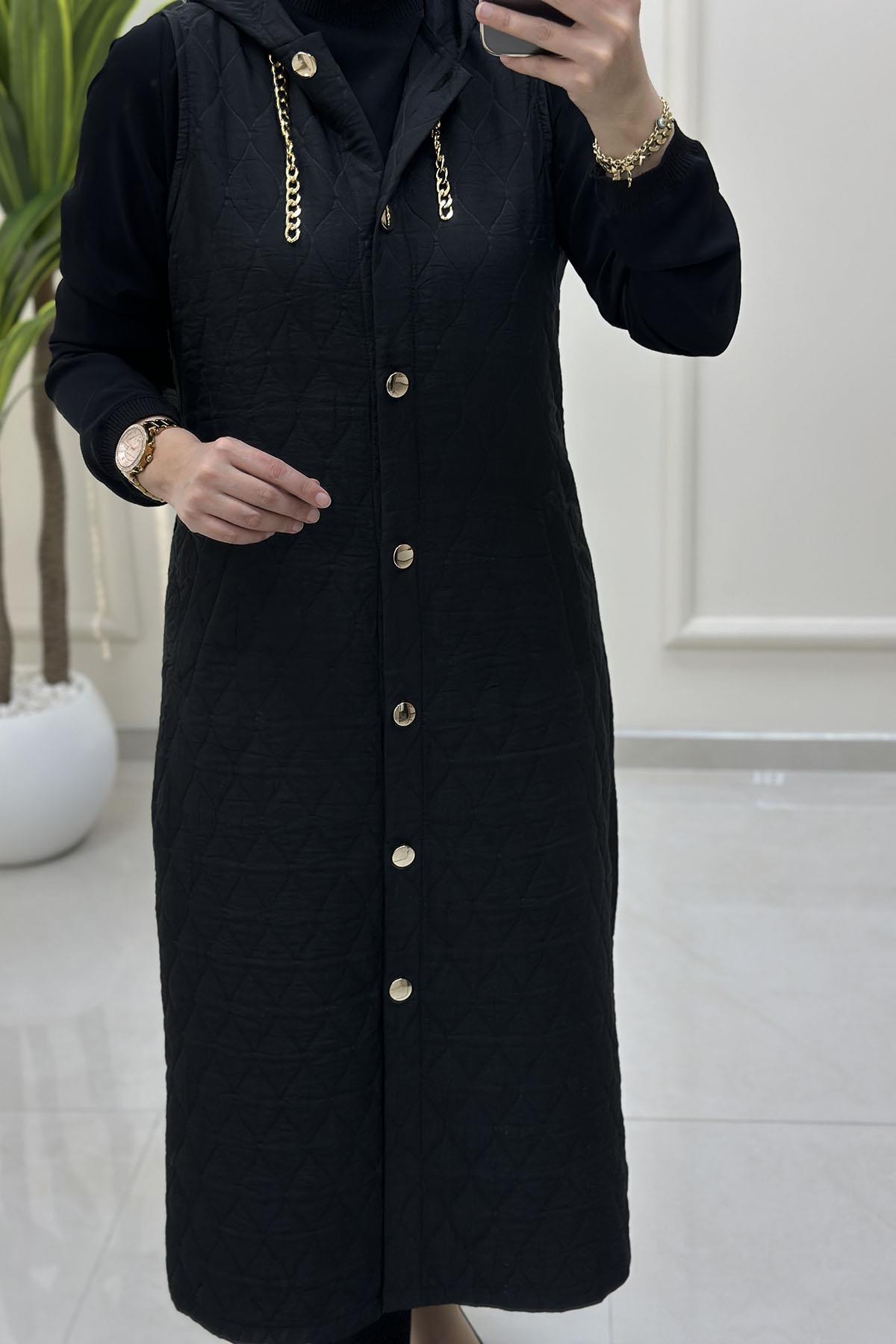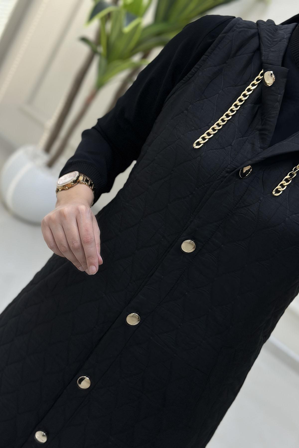 Önü Düğmeli Zincir Detaylı Kadın Kapitone Yelek Siyah MP 2623 (MP-26K2623)
