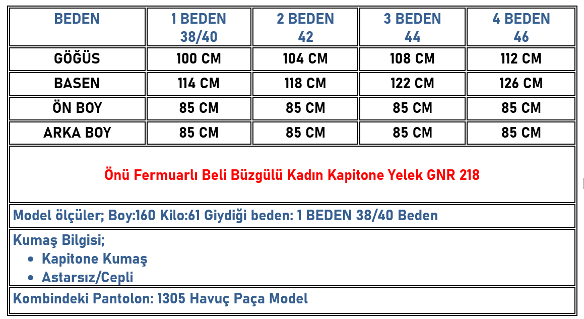 Önü Fermuarlı Beli Büzgülü Kadın Kapitone Yelek Siyah GNR 218 (GNR-26K218)