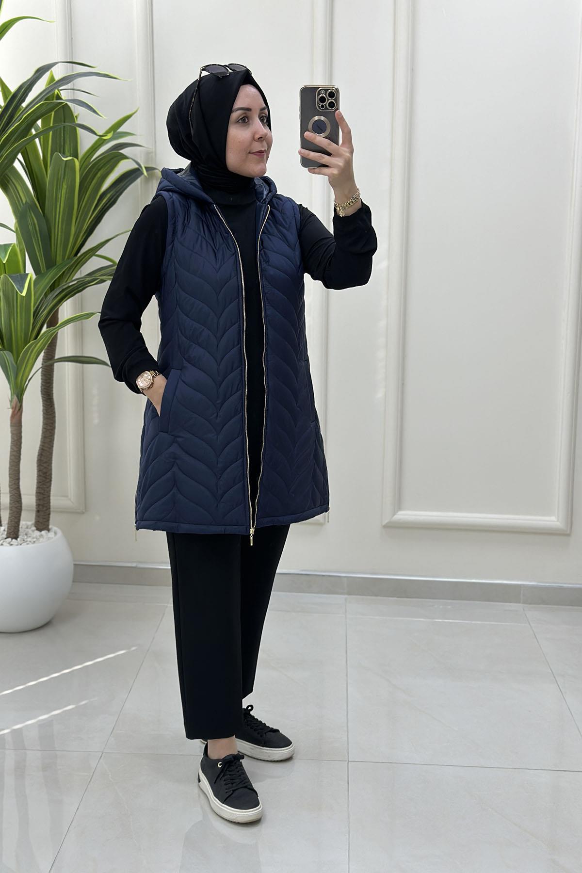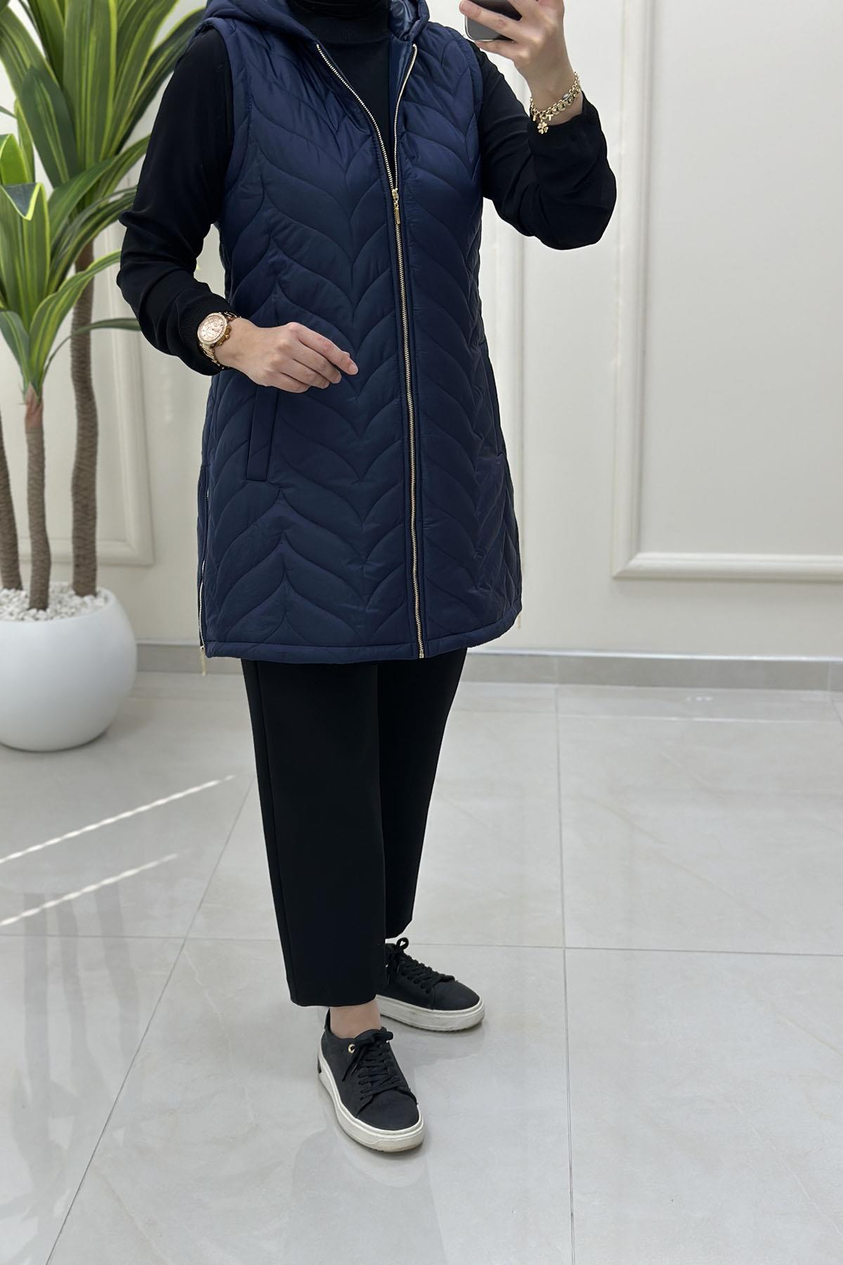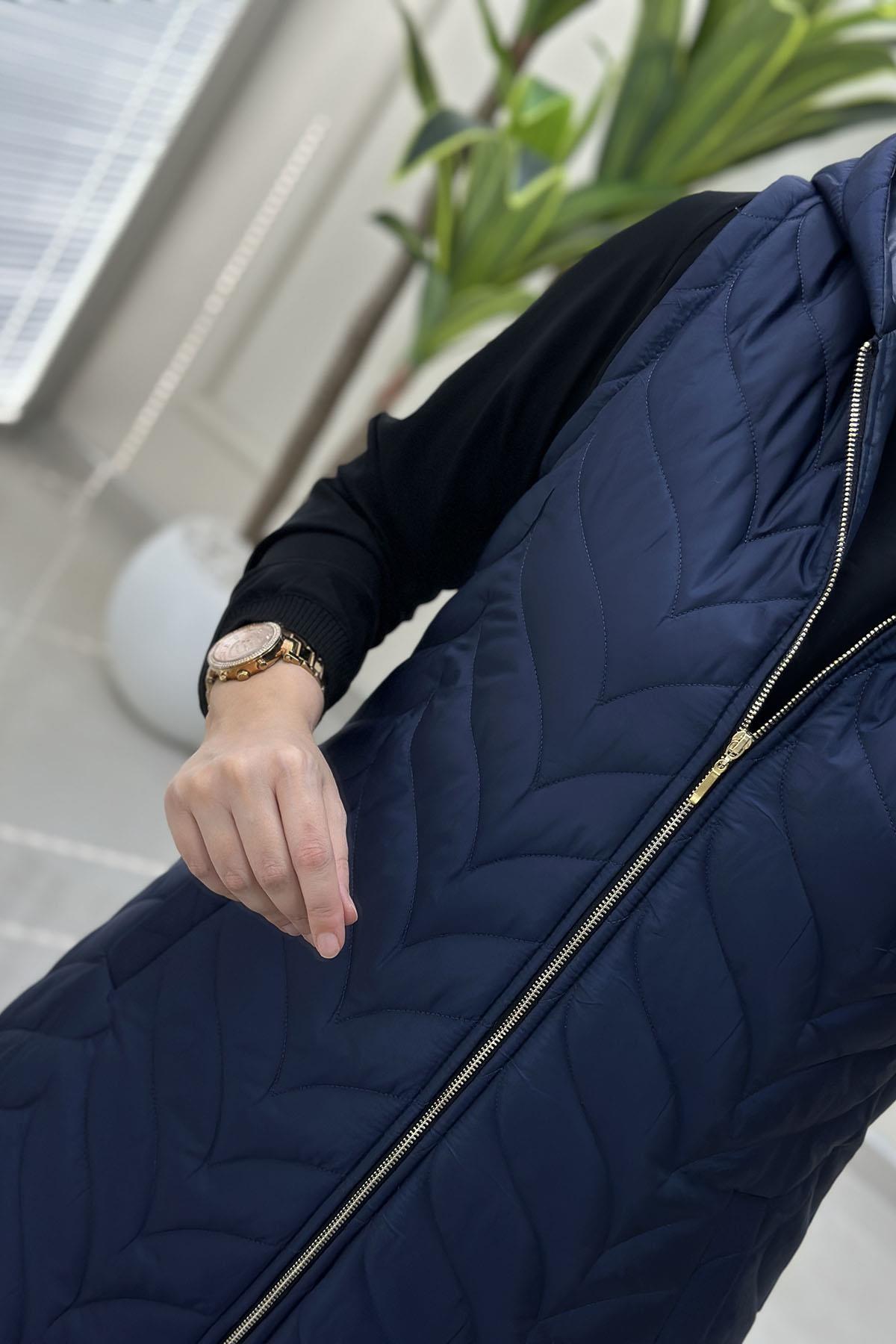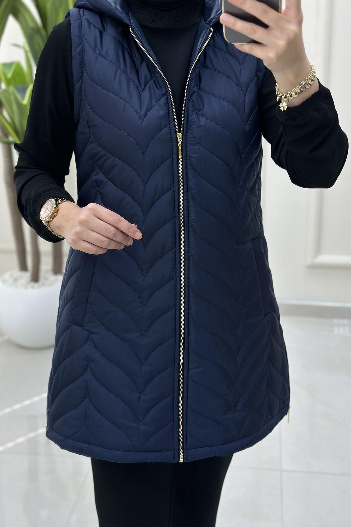 Önü Fermuarlı Cepli Kadın Kapitone Dolum Yelek Lacivert QTN 4962 (QTN-26K4962)