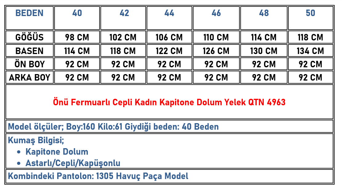 Önü Fermuarlı Cepli Kadın Kapitone Dolum Yelek Taba QTN 4963 (QTN-26K4963)