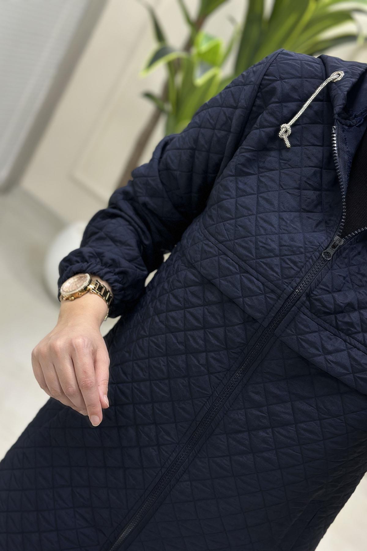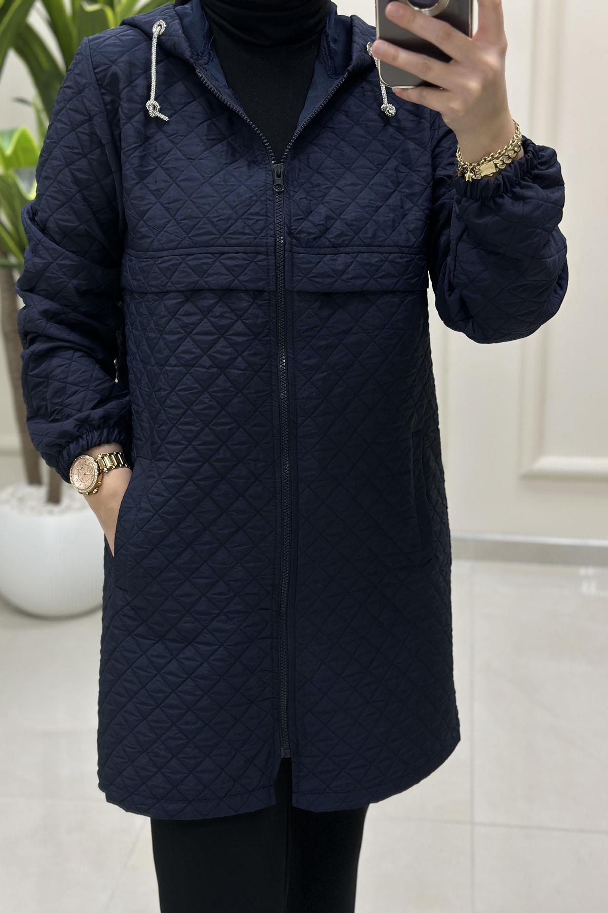 Önü Fermuarlı Cepli Kolu Büzgülü Kadın Kapitone Giyçık Lacivert GNR 219 (GNR-26K219)
