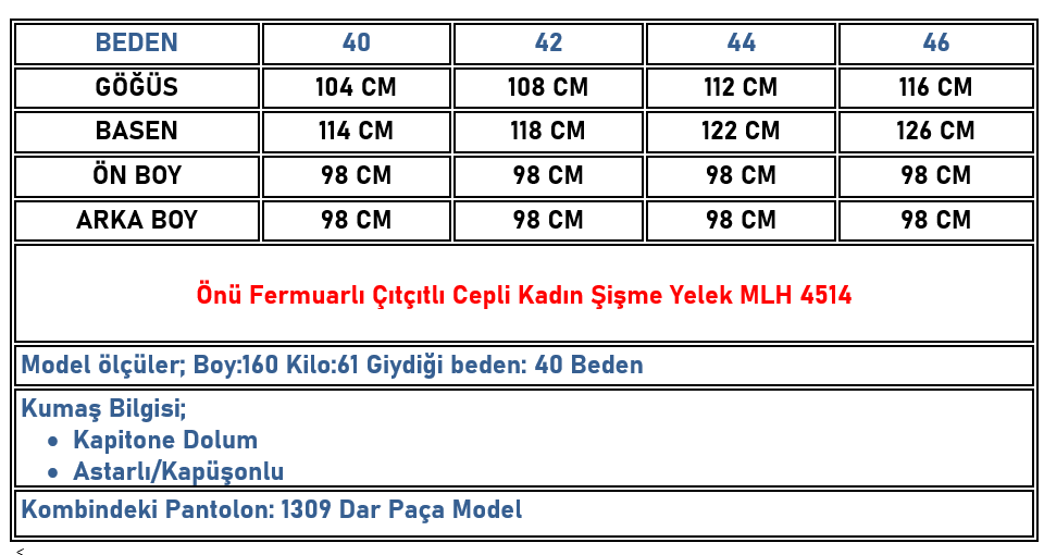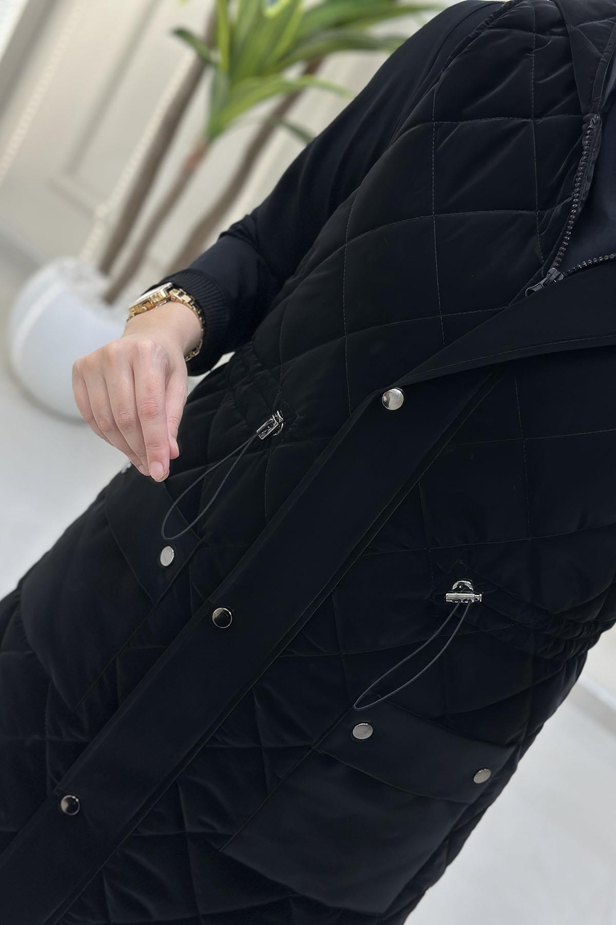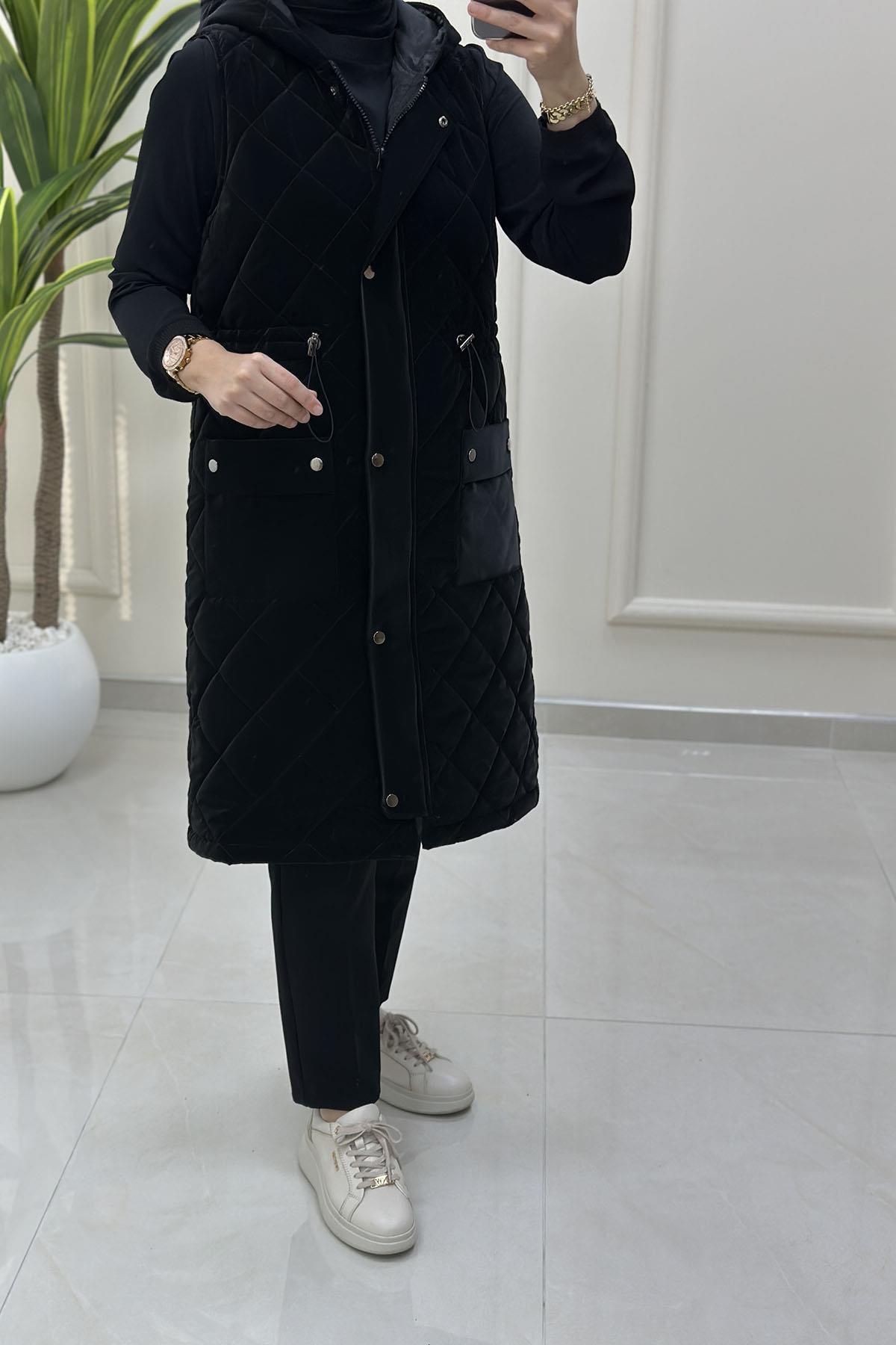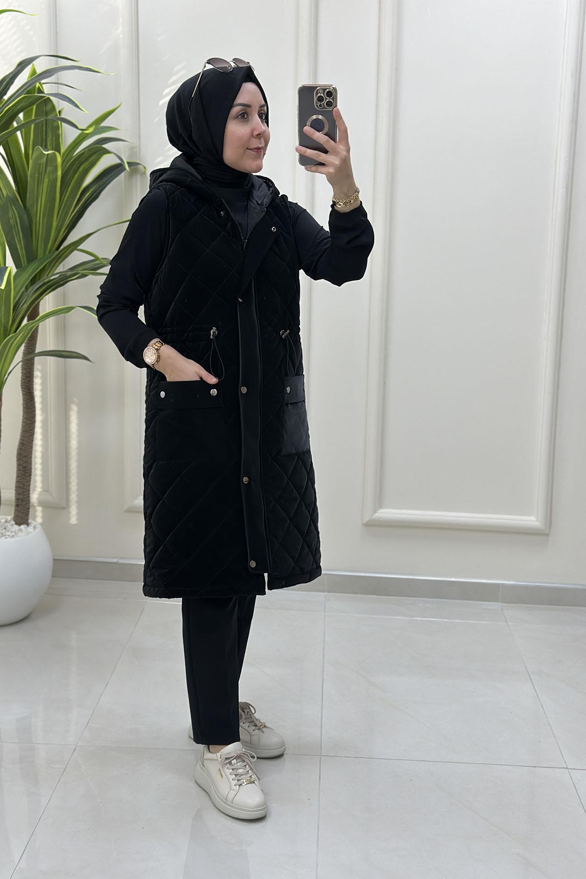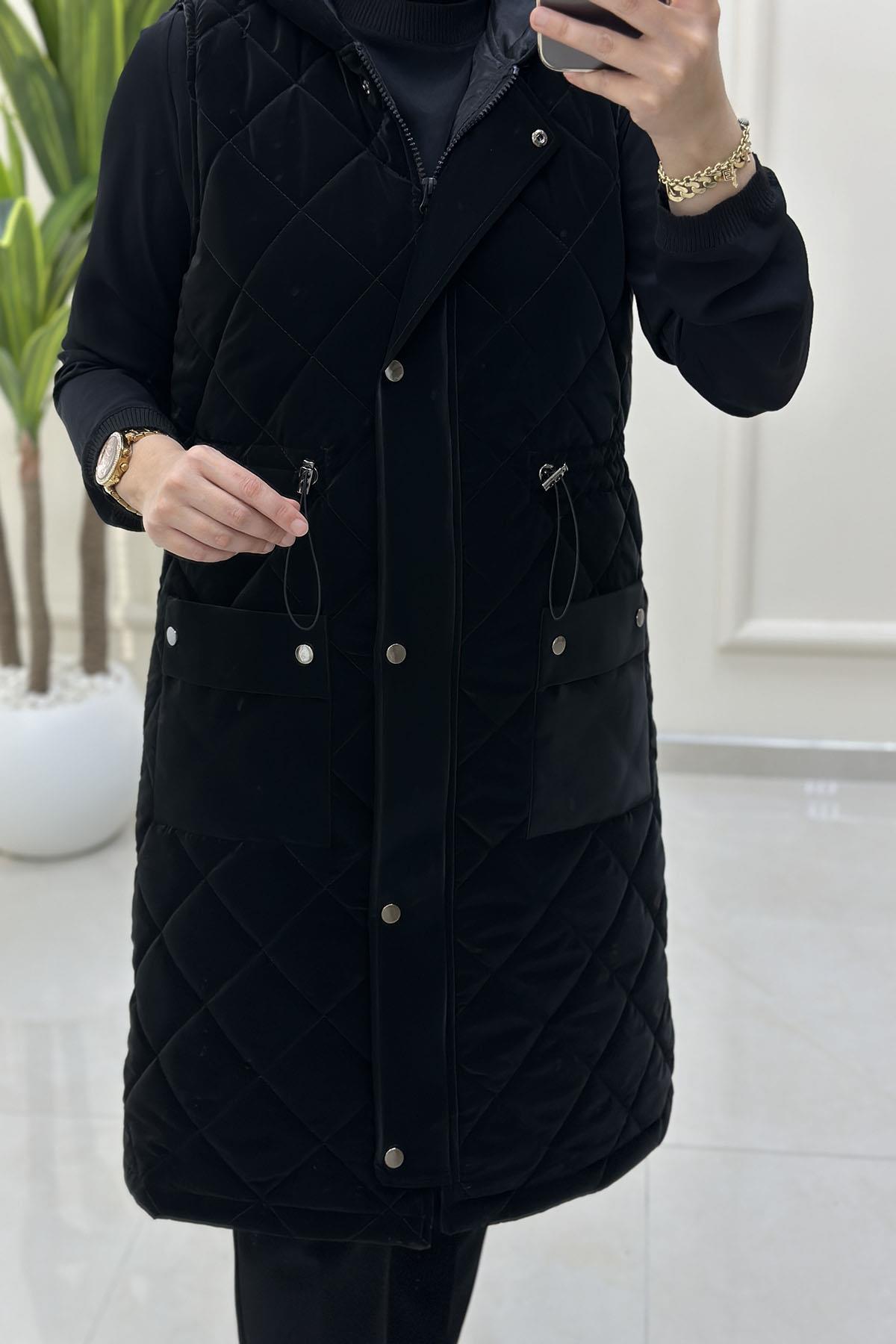 Önü Fermuarlı Çıtçıtlı Cepli Kadın Şişme Yelek Siyah MLH 4514 (MLH-26K4514)