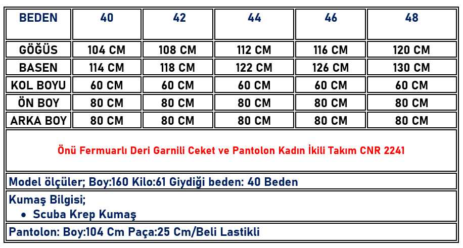 Önü Fermuarlı Deri Garnili Ceket ve Pantolon Kadın İkili Takım Siyah CNR 2241 (CNR-26K2241)