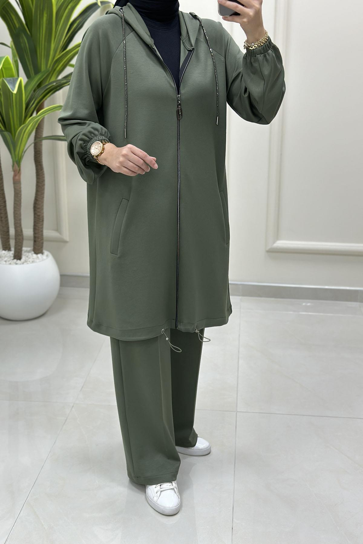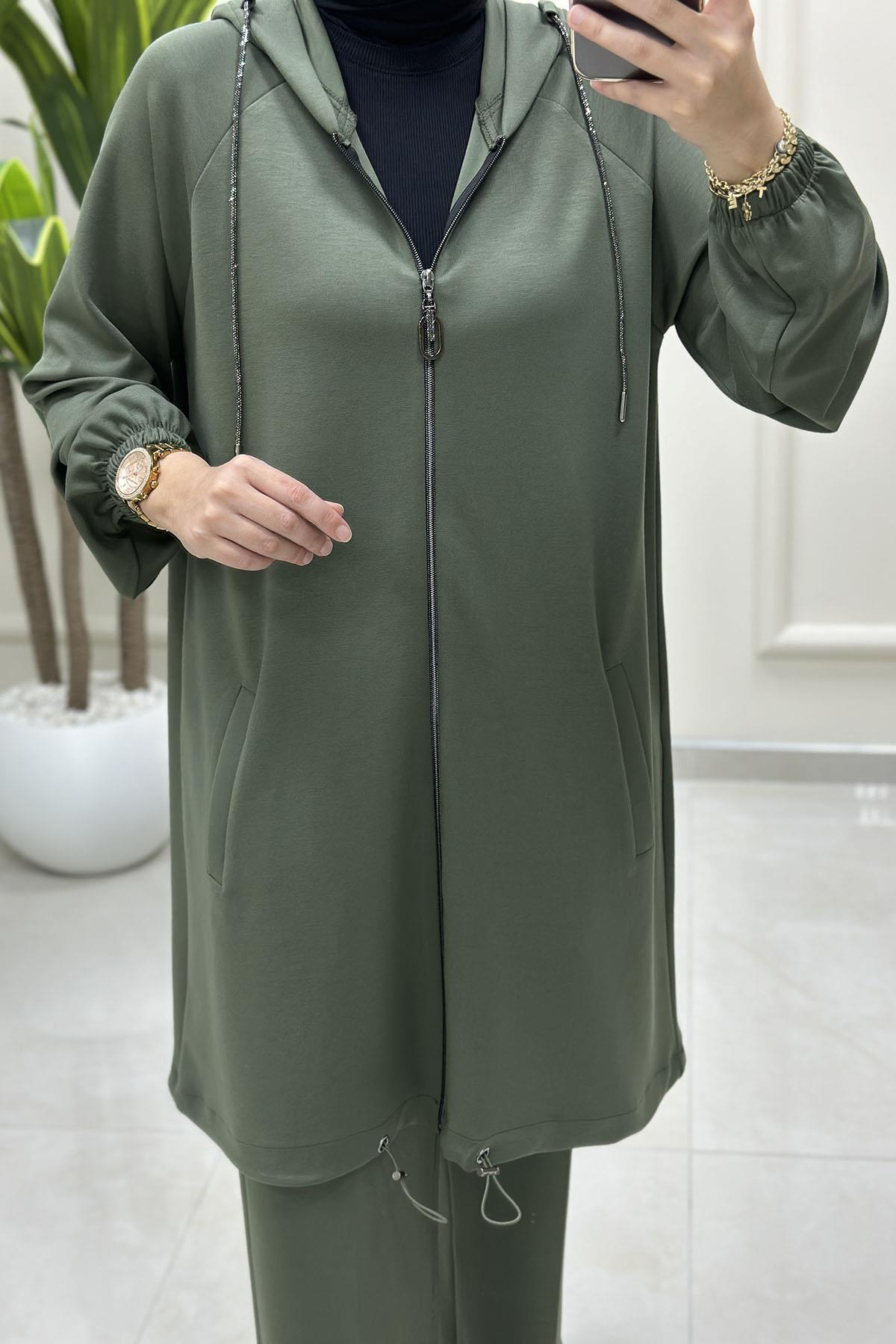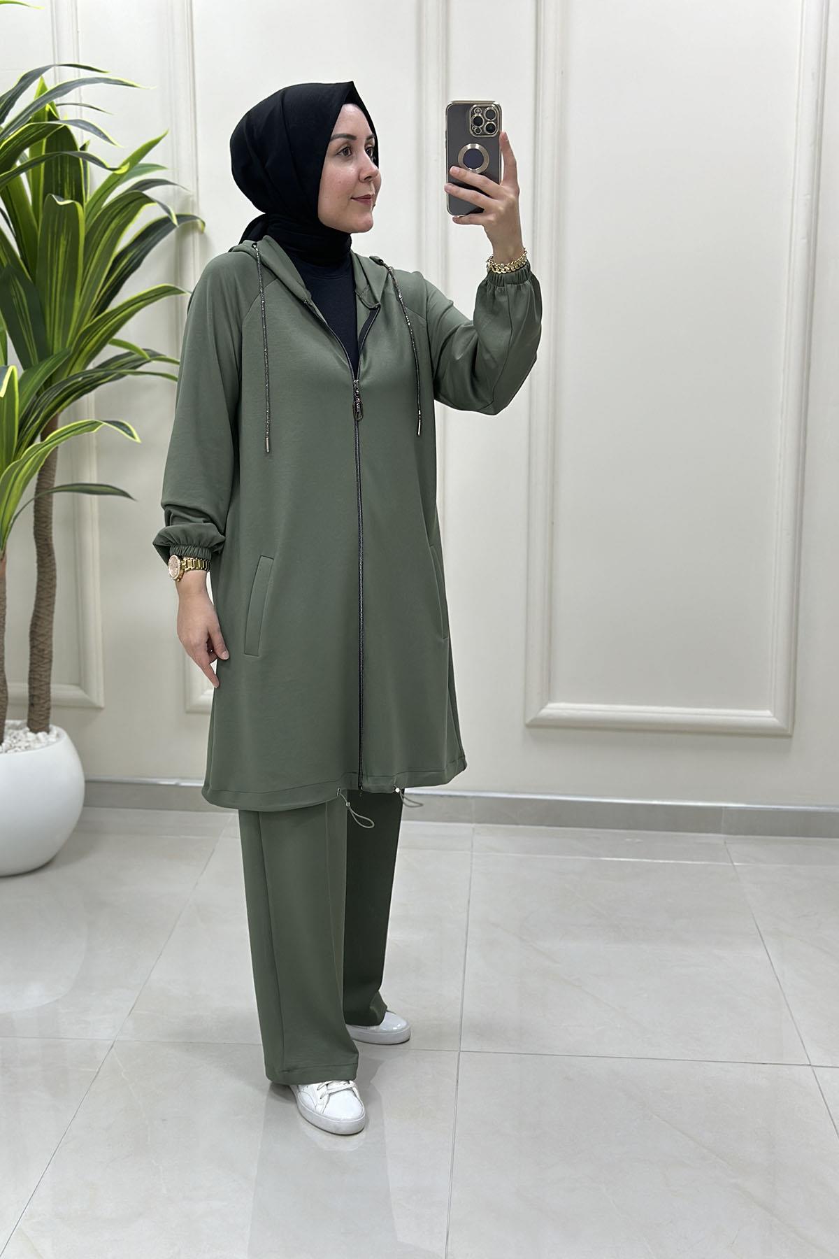 Önü Fermuarlı Giyçık ve Pantolon Kadın Modal İkili Takım Çağla Yeşili CNR 2216 (CNR-26K2216)