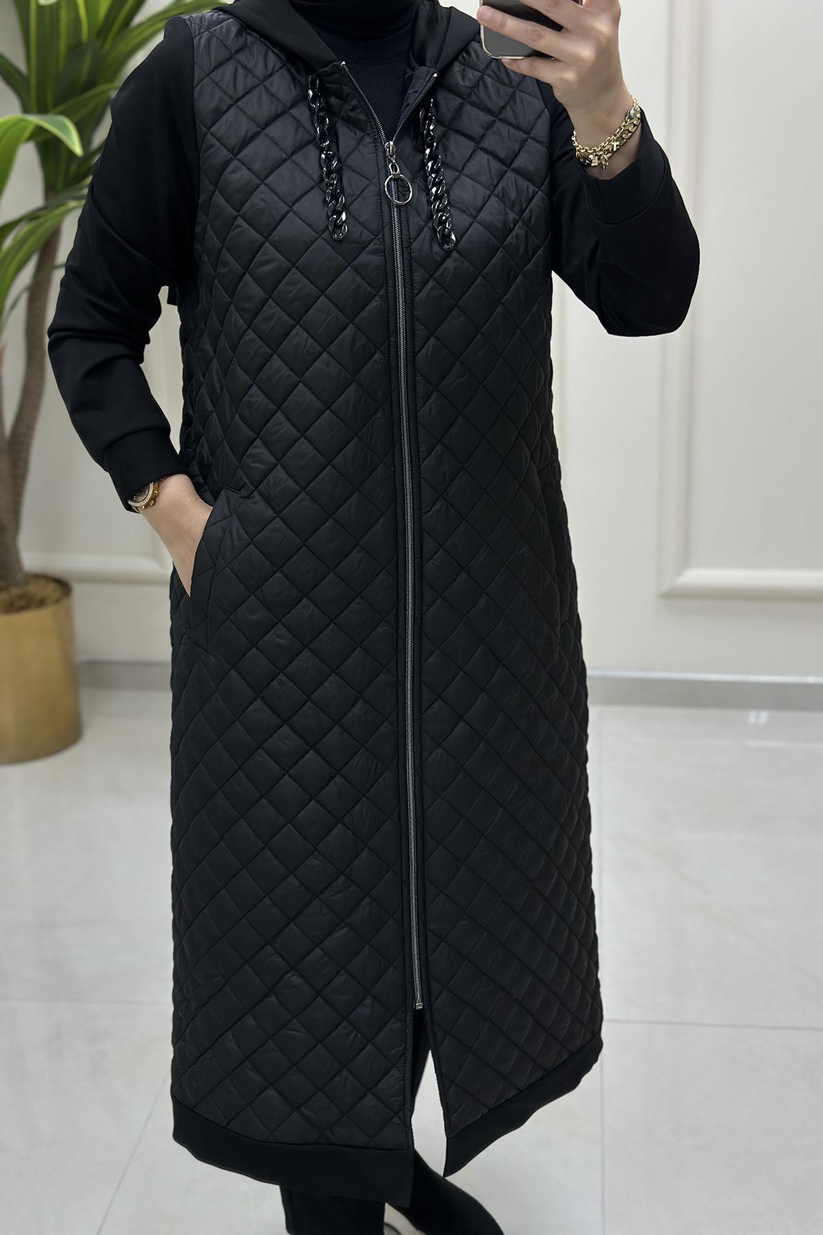 Önü Fermuarlı Kapitone Kadın Giyçık Kap Siyah MP 2656 (MP-26K2656)