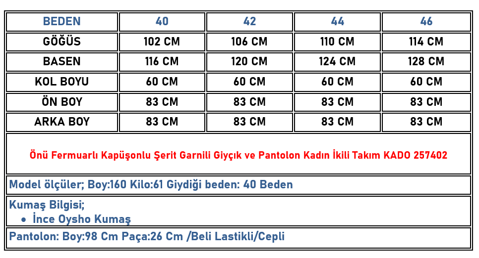 Önü Fermuarlı Kapüşonlu Şerit Garnili Giyçık ve Pantolon Kadın İkili Takım Vizon KADO 257402 (KADO-26K257402)