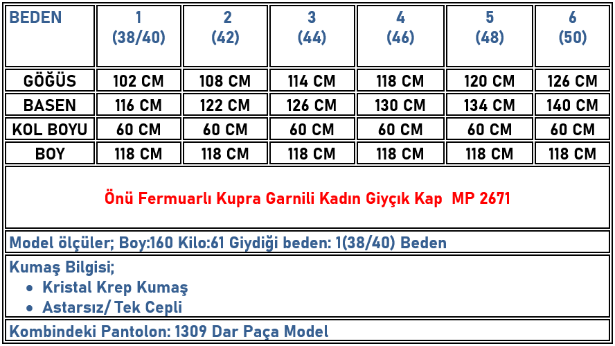 Önü Fermuarlı Kupra Garnili Kadın Giyçık Kap Siyah MP 2671 (MP-26Y2671)