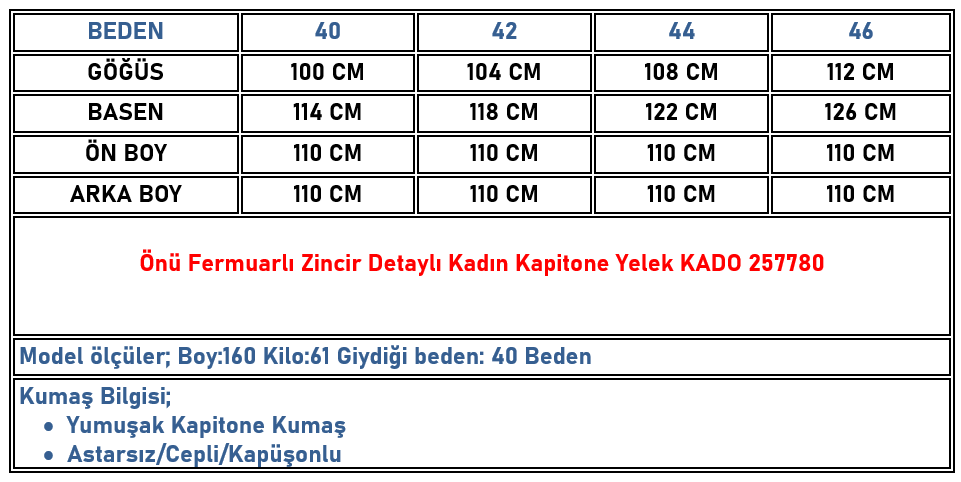 Önü Fermuarlı Zincir Detaylı Kadın Kapitone Yelek Bej KADO 257780 (KADO-26K257780)