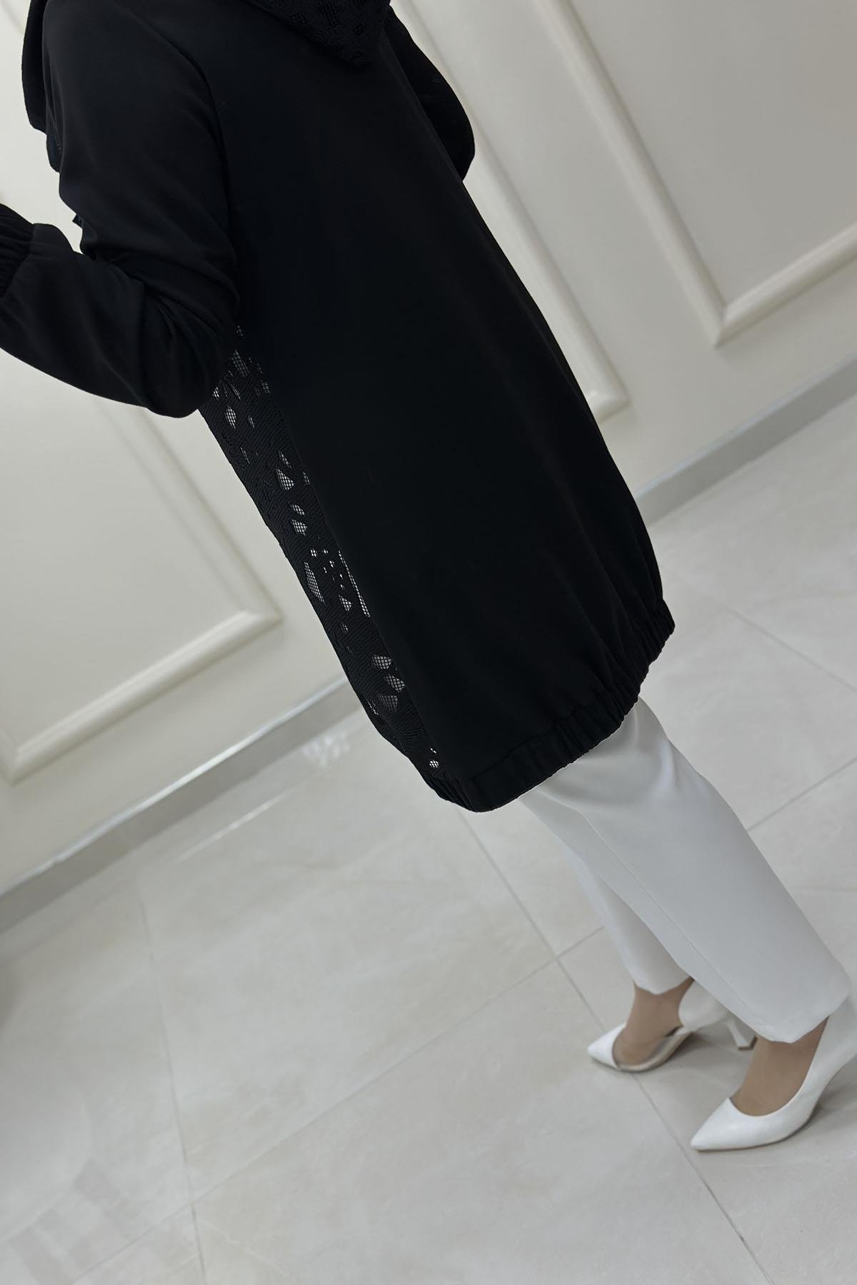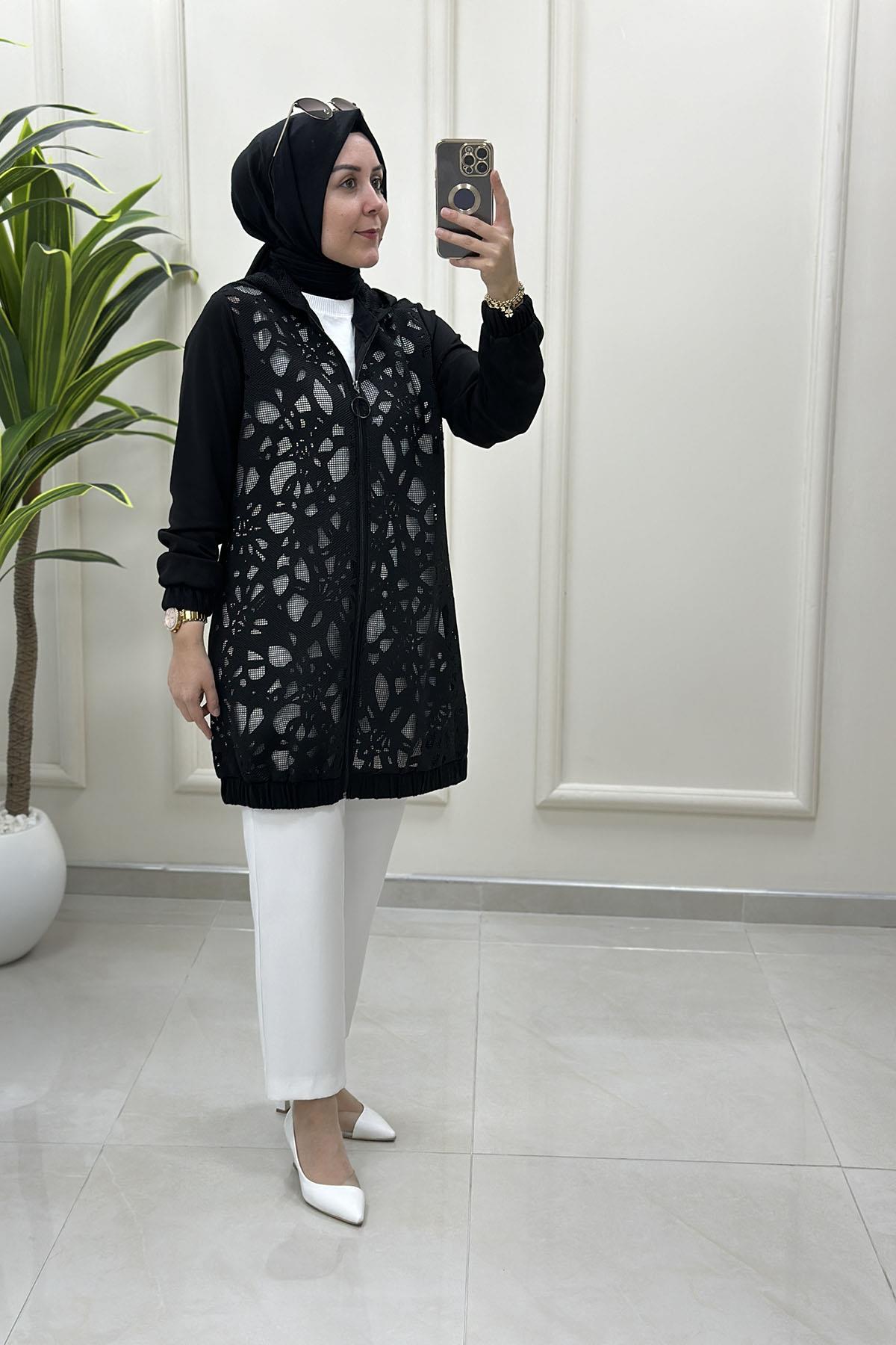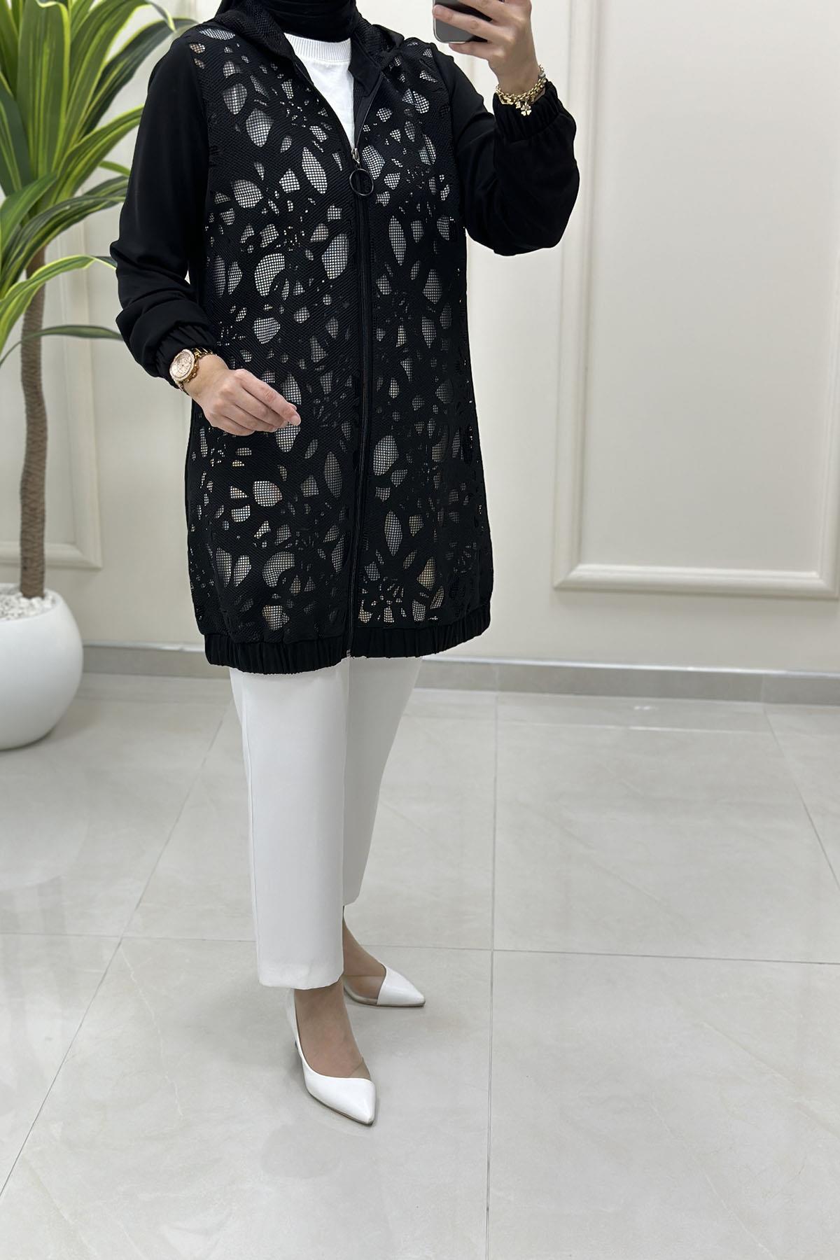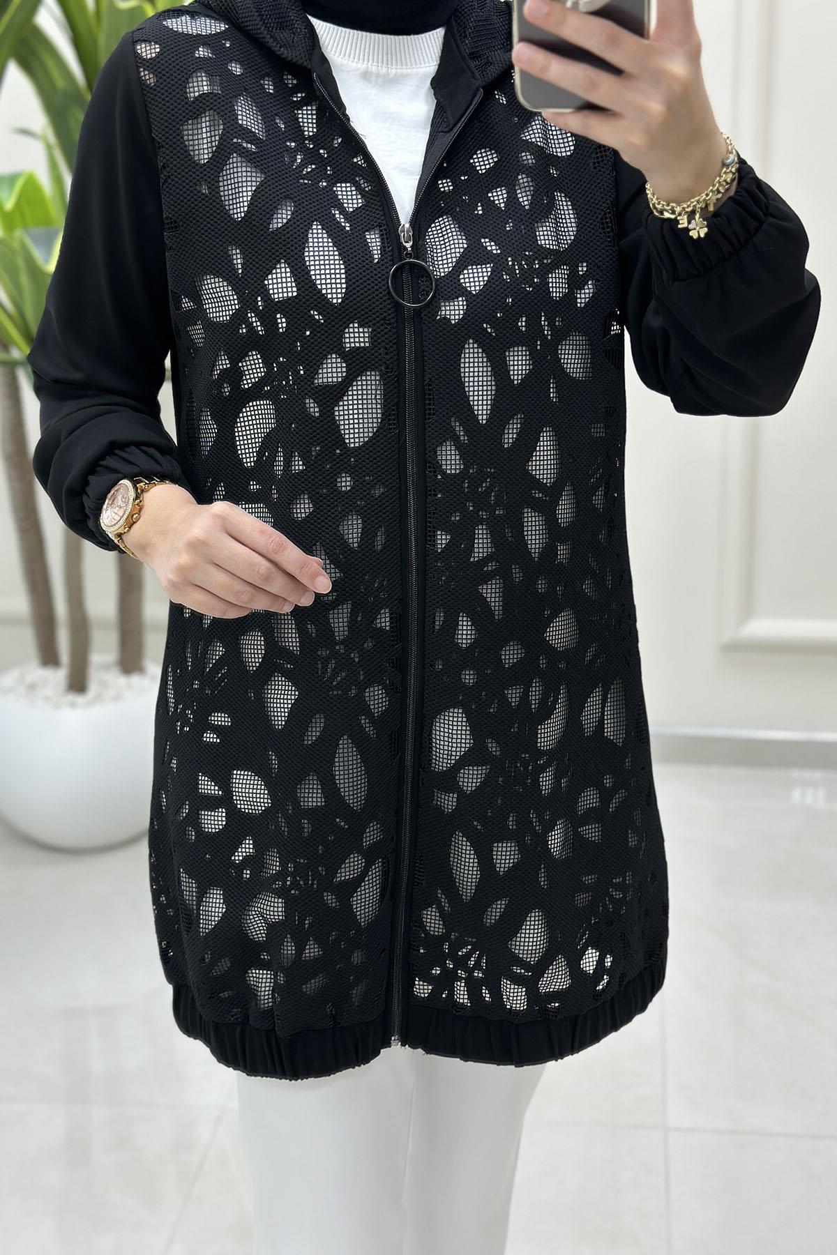Önü Jakar Fileli Fermuarlı Kadın Giyçık Kap Siyah HYA 1611 (HYA-26K1611)