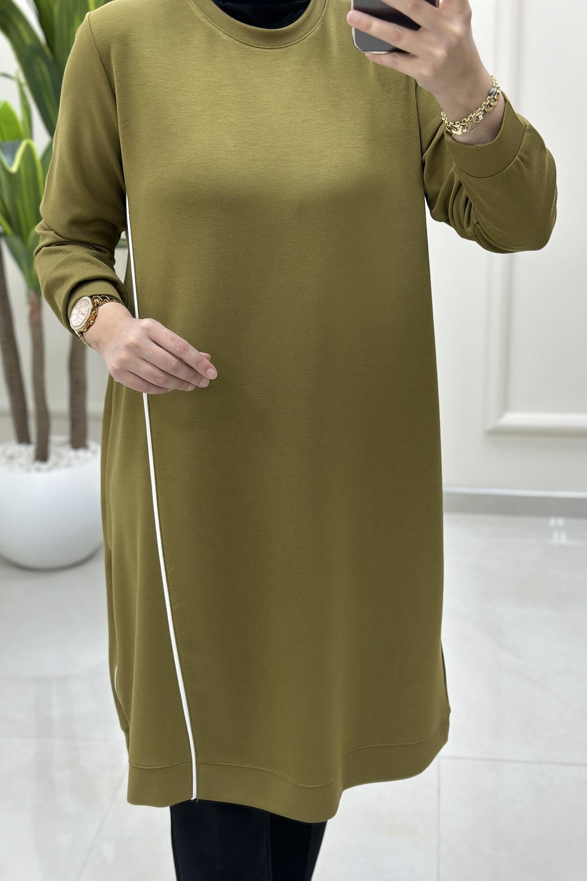 Önü Şeritli Yan Fermuar Detaylı Kadın Tunik Yağ Yeşili KADO 257536 (KADO-26K257536)