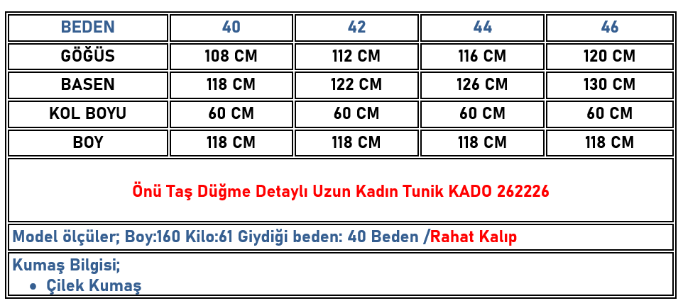 Önü Taş Düğme Detaylı Uzun Kadın Tunik Haki KADO 262226 (KADO-26Y262226)
