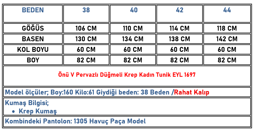 Önü V Pervazlı Düğmeli Krep Kadın Tunik Acı Kahve EYL 1697 (EYL-26Y1697 )