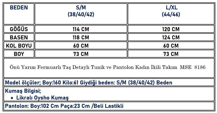 Önü Yarım Fermuarlı Taş Detaylı Tunik ve Pantolon Kadın İkili Takım Siyah MSE 8186 (MSE-26K8186)