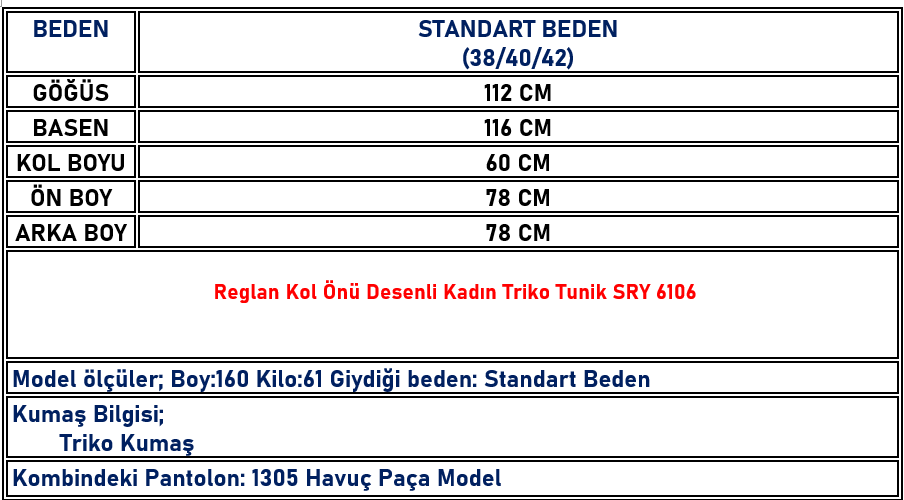 Reglan Kol Önü Desenli Kadın Triko Tunik Lacivert SRY 6106 (SRY-26K6106)