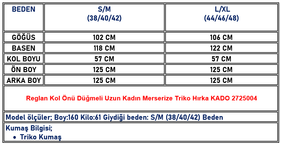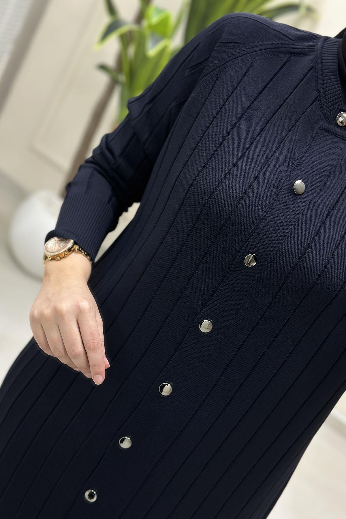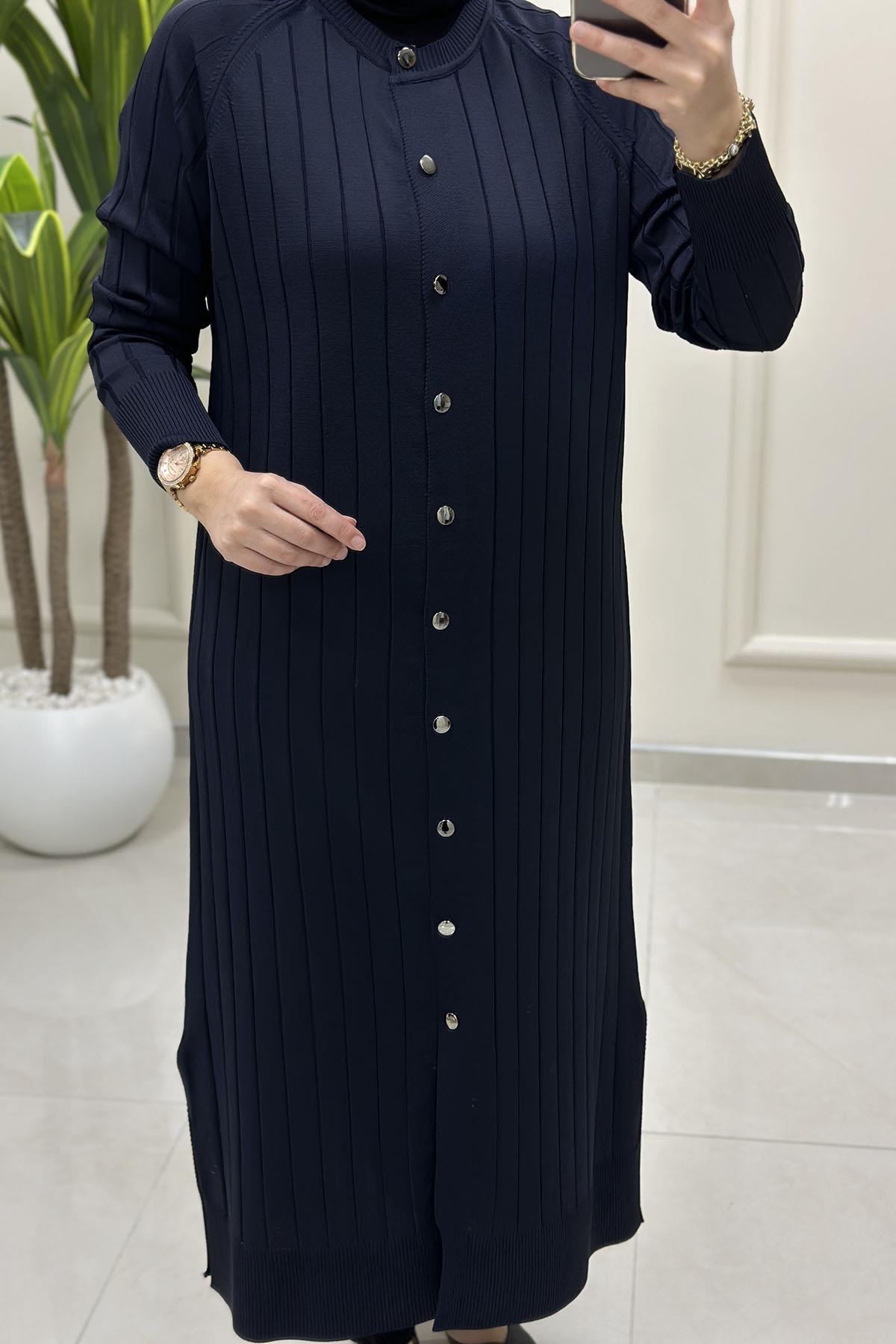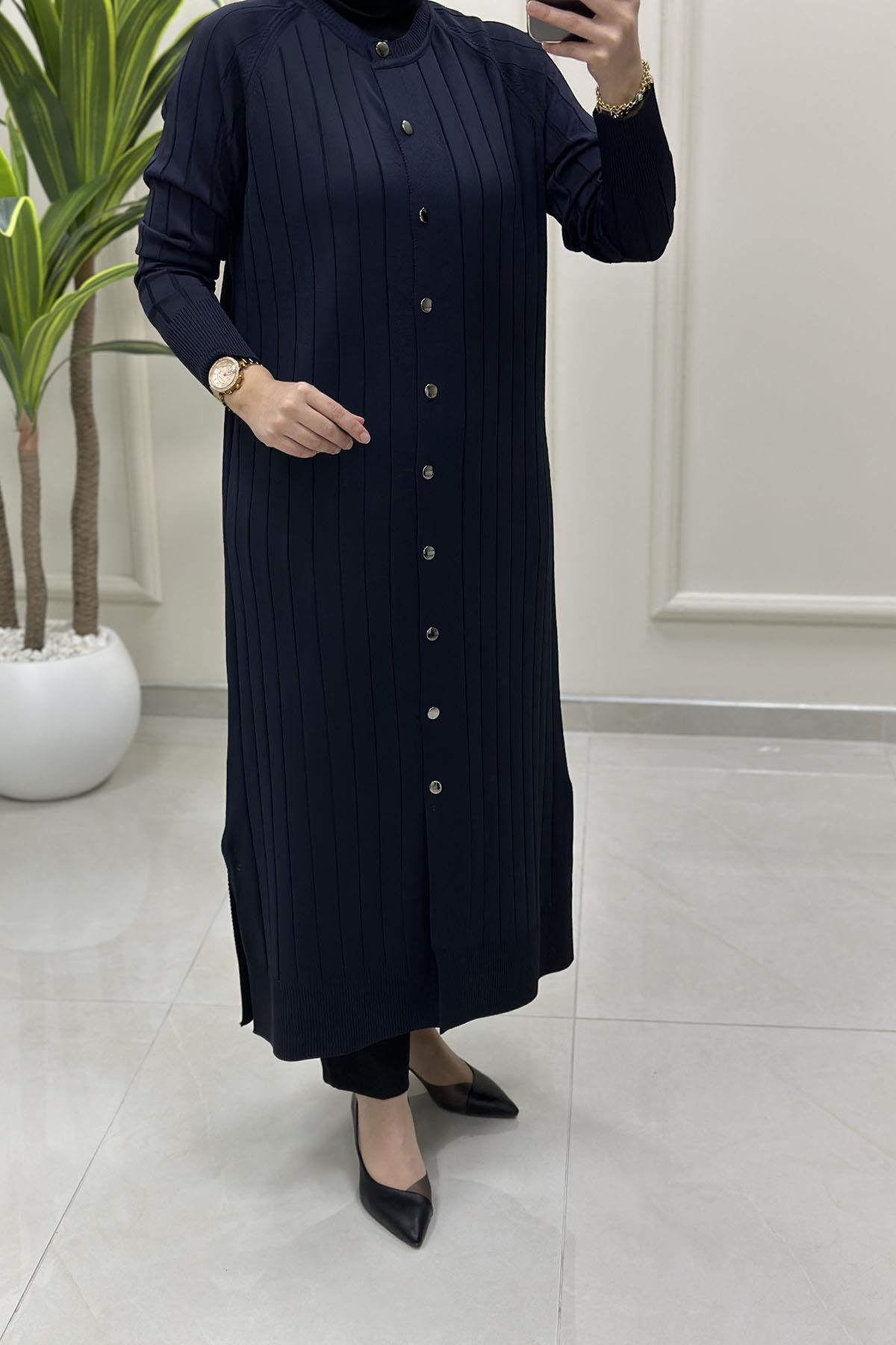 Reglan Kol Önü Düğmeli Uzun Kadın Merserize Triko Hırka Lacivert KADO 2725004 (KADO-26K2725004)