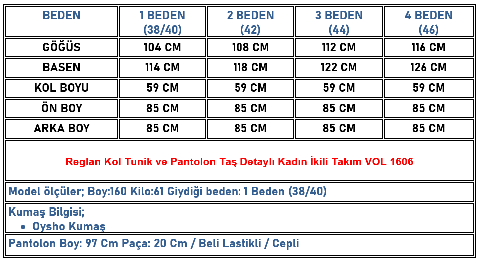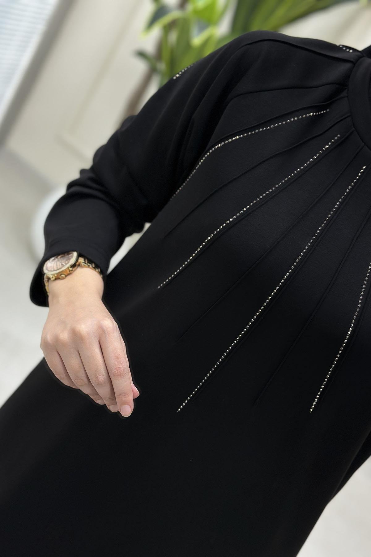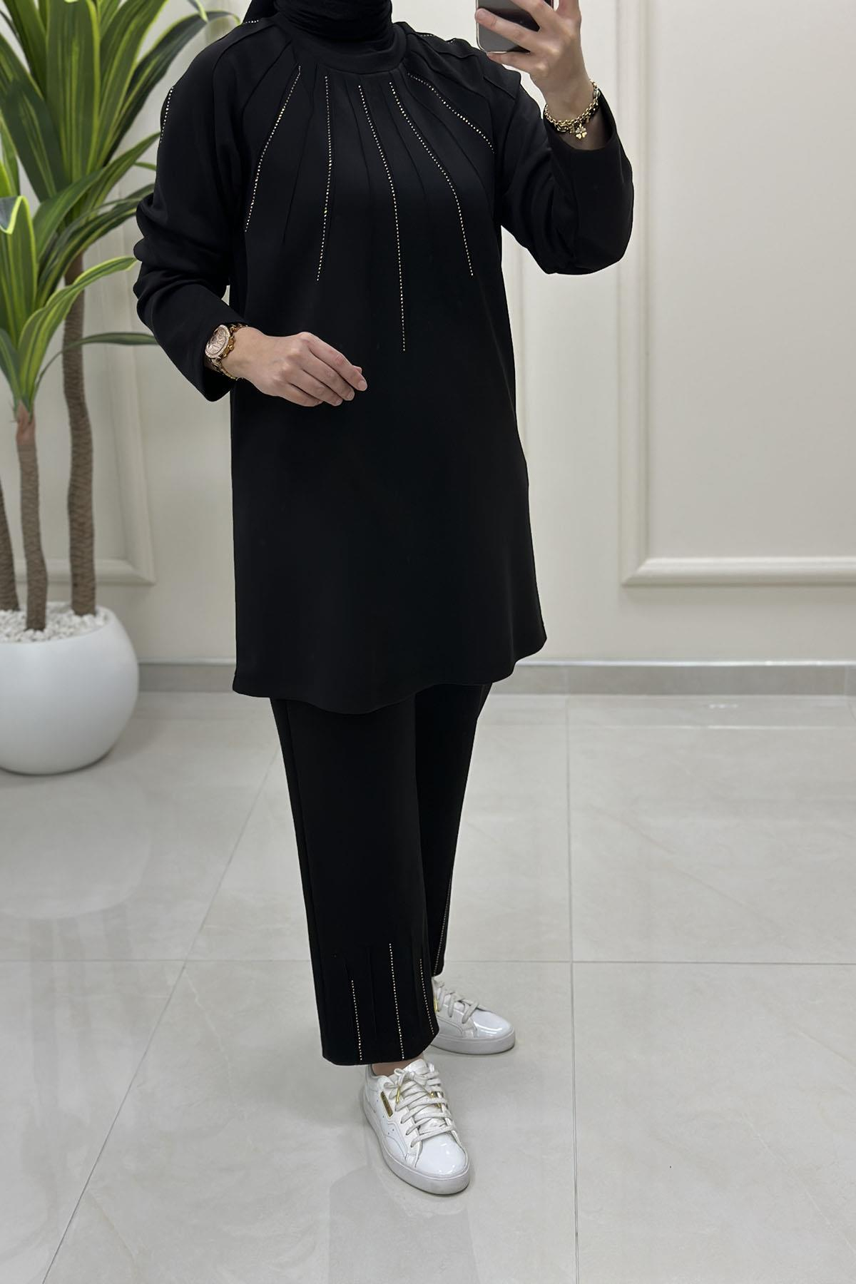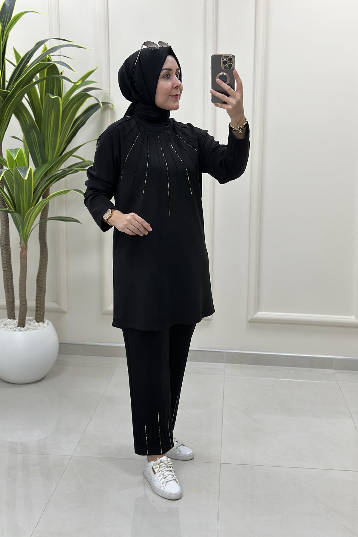 Reglan Kol Tunik ve Pantolon Taş Detaylı Kadın İkili Takım Siyah VOL 1606 (VOL-26K1606)