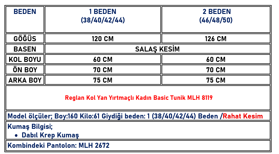 Reglan Kol Yan Yırtmaçlı Kadın Basic İçlik Tunik Lacivert MLH 8119 (MLH-26Y8119)