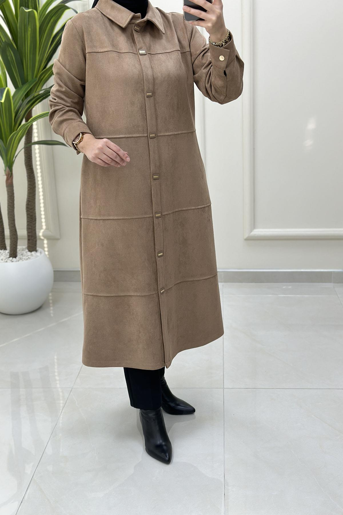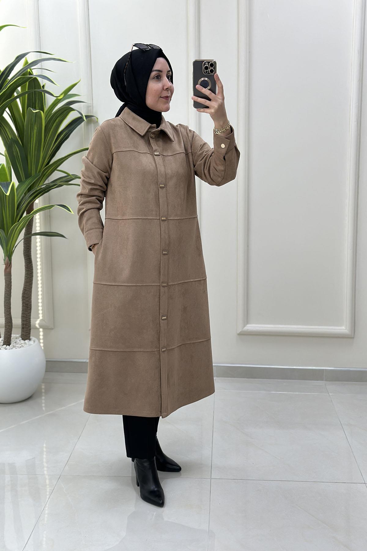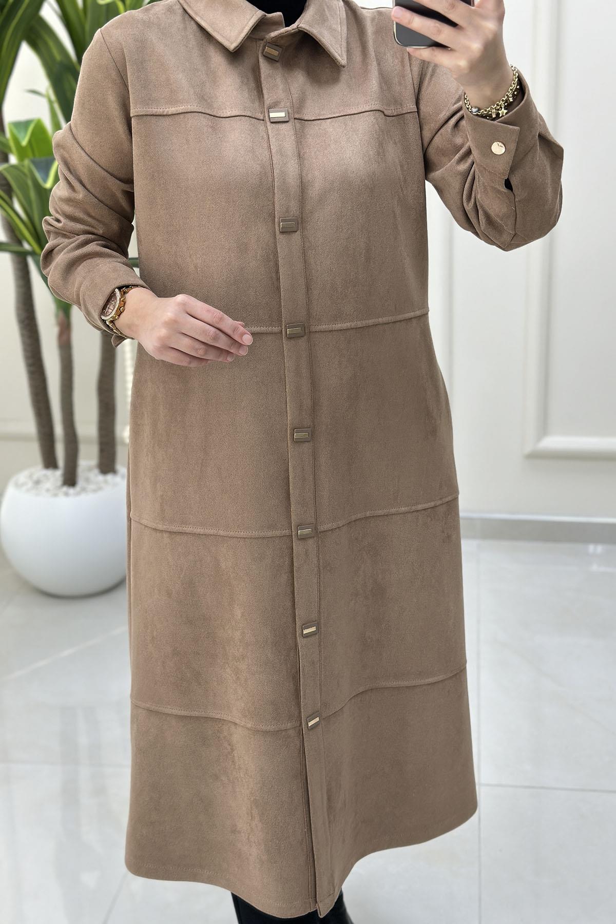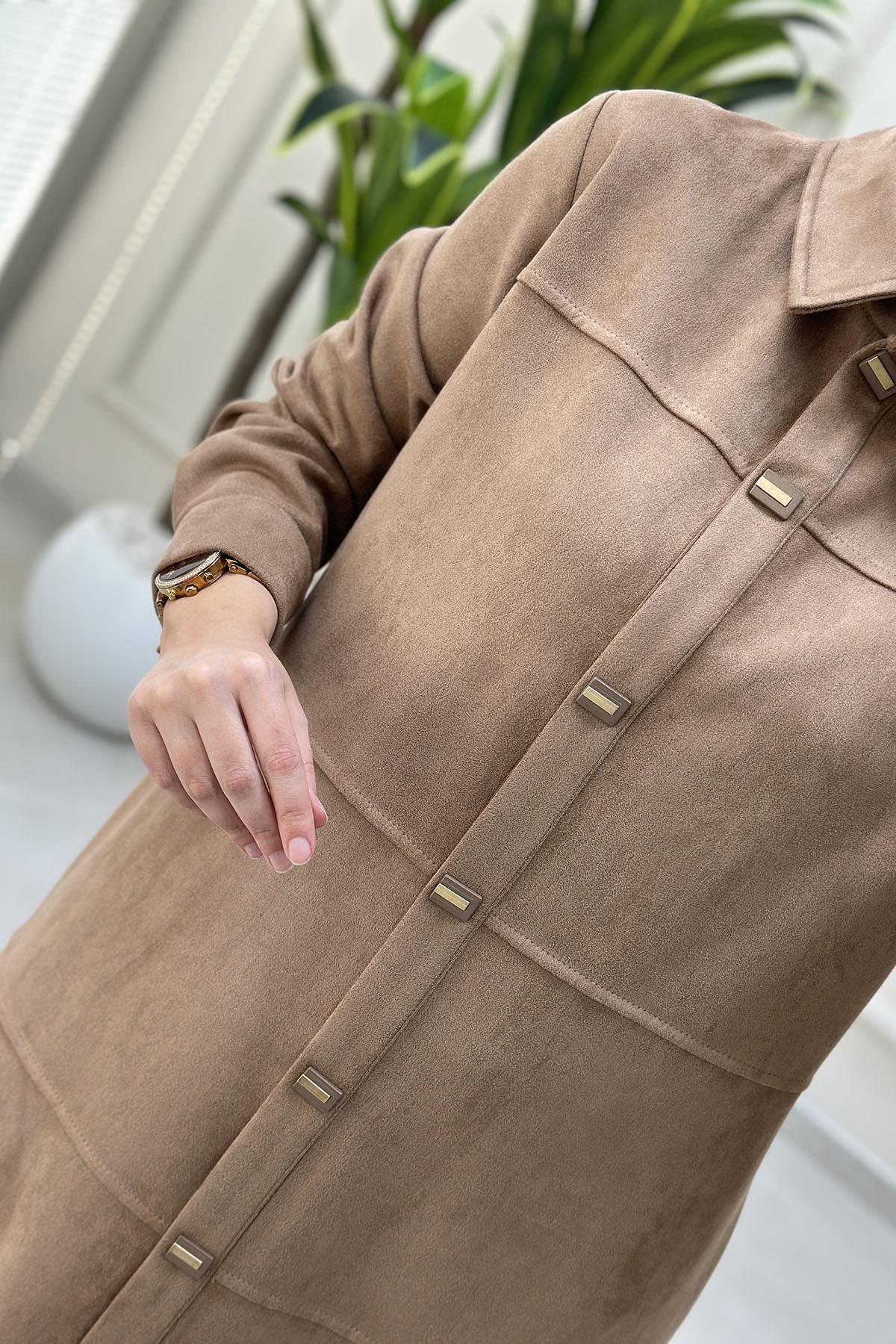 Süet Önü Çıtçıtlı Kolu Manşetli Kadın Giyçık Kap Bej BRL 7210 (BRL-26K7210)