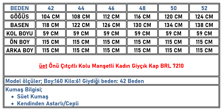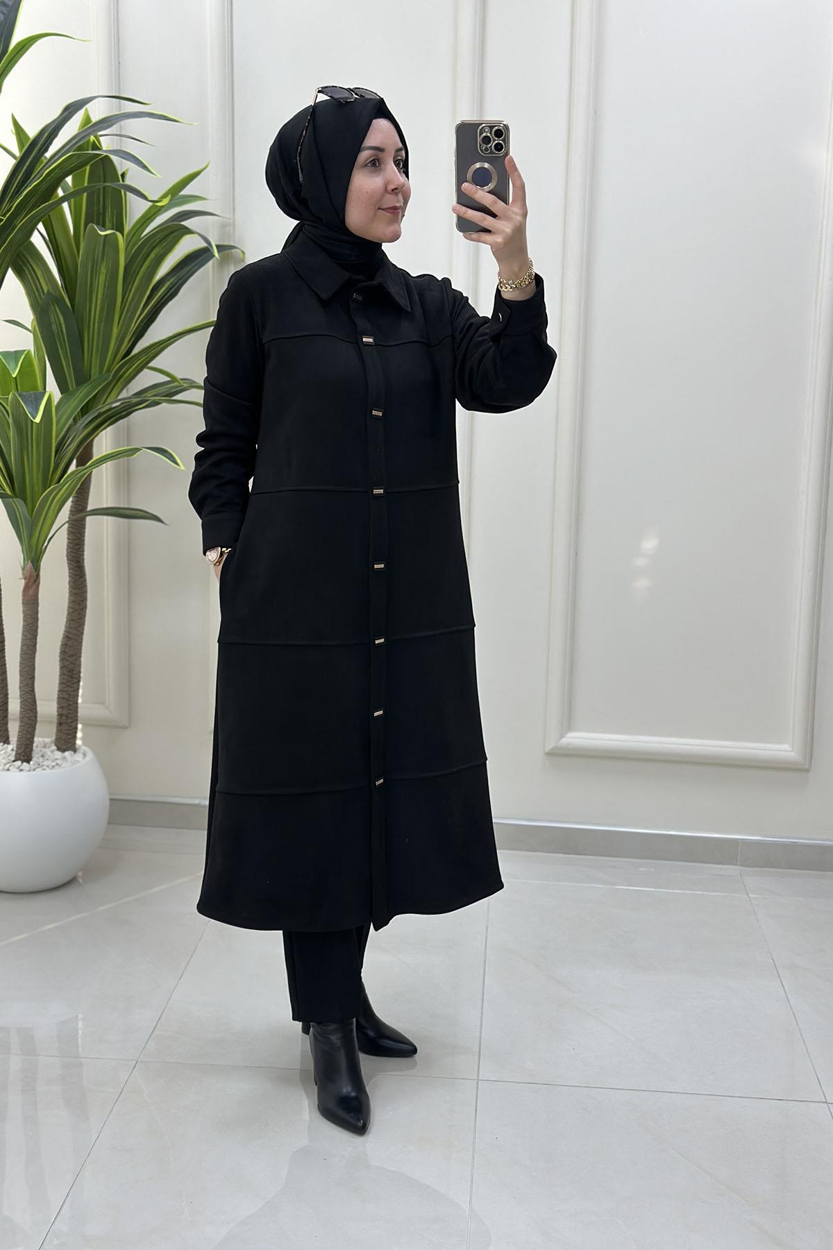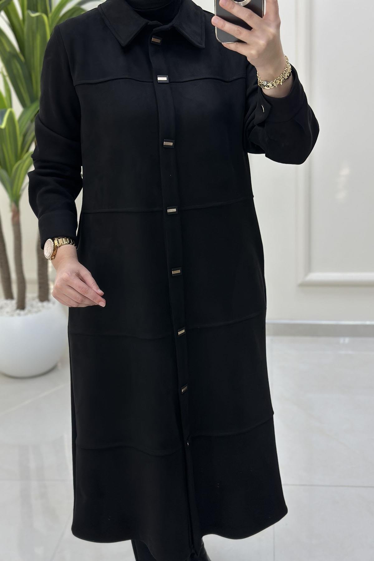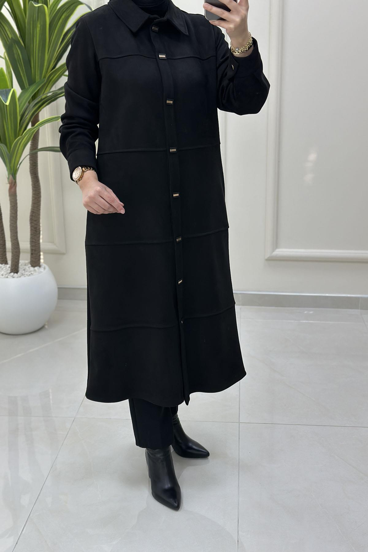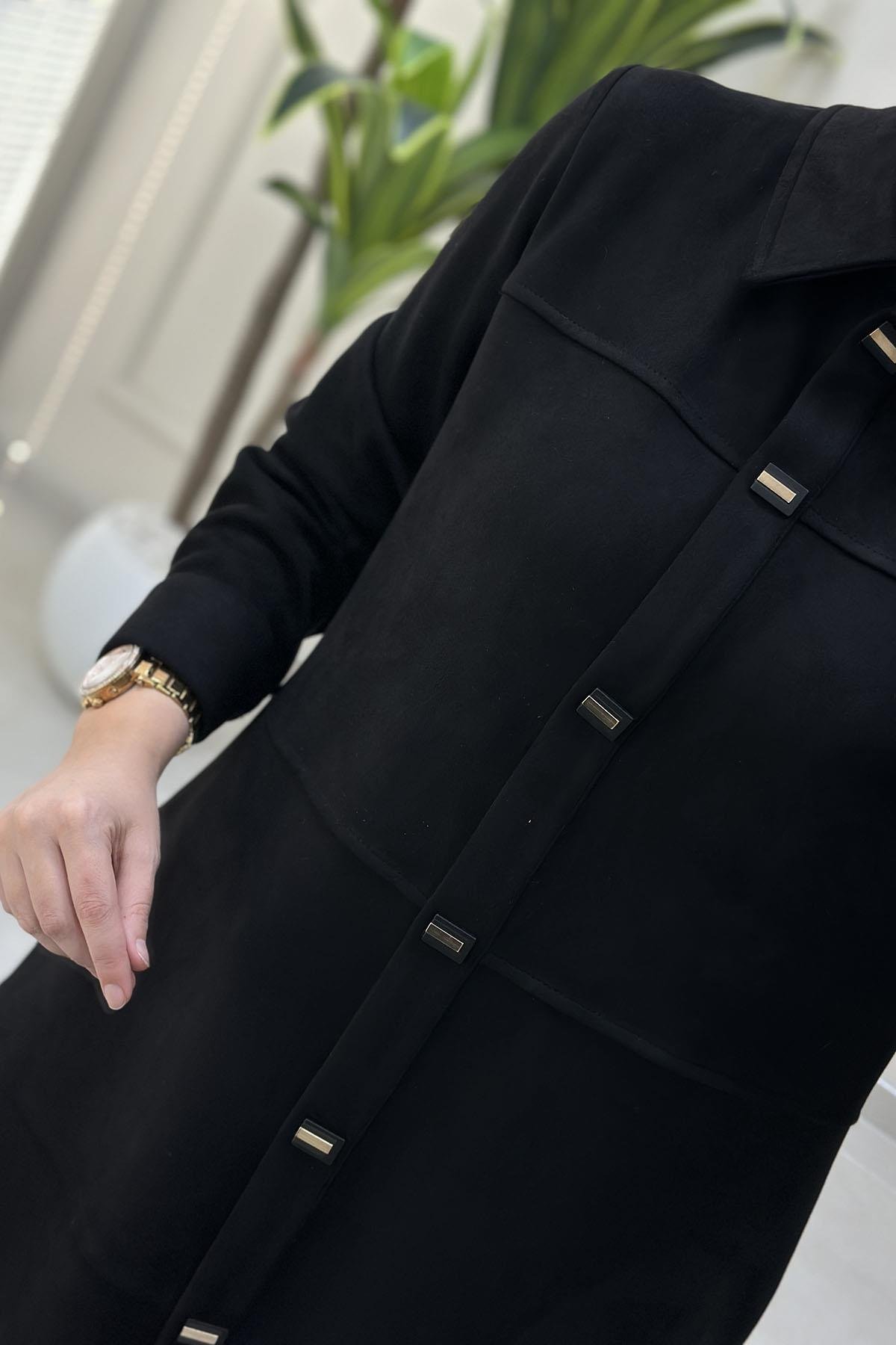 Süet Önü Çıtçıtlı Kolu Manşetli Kadın Giyçık Kap Siyah BRL 7210 (BRL-26K7210)