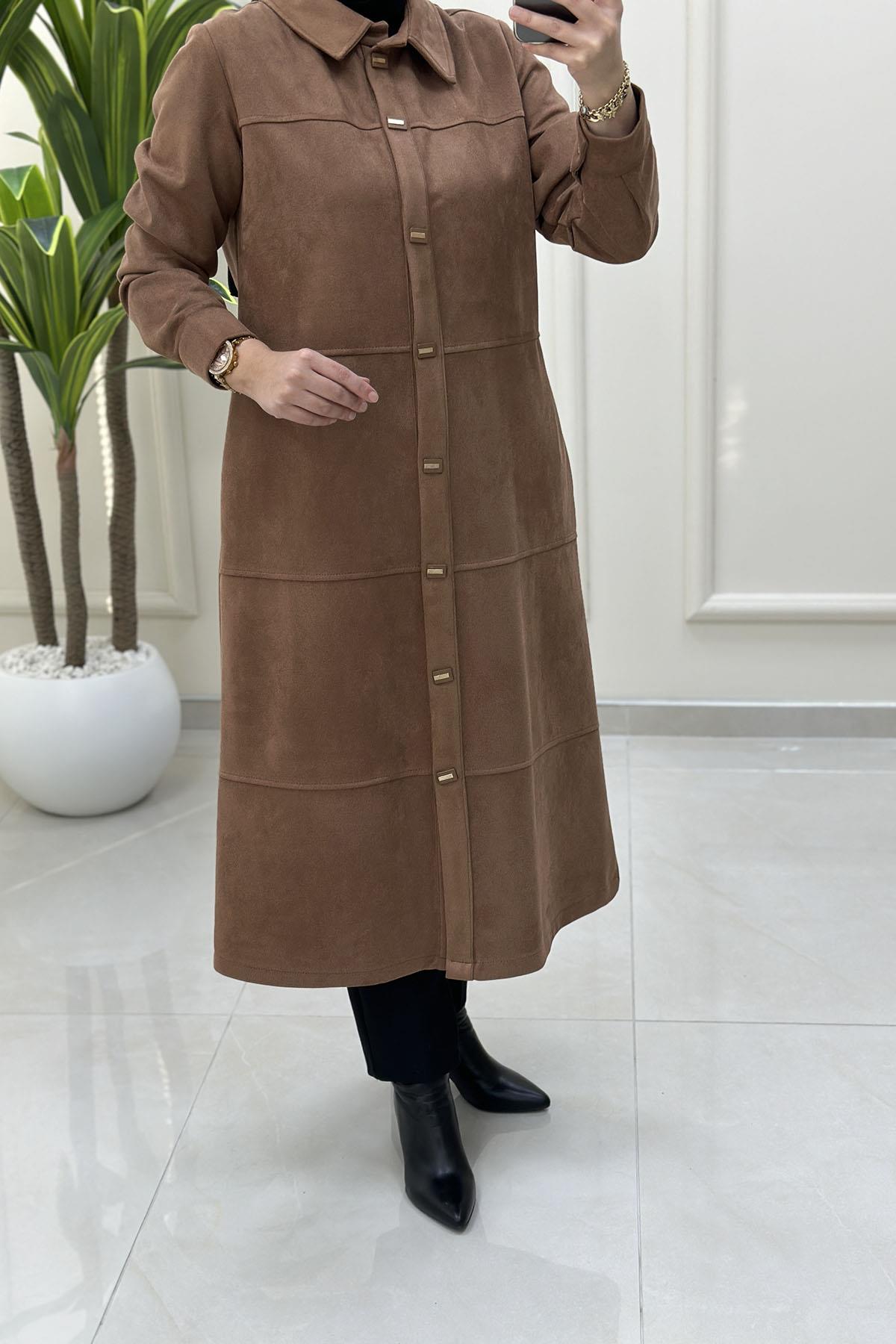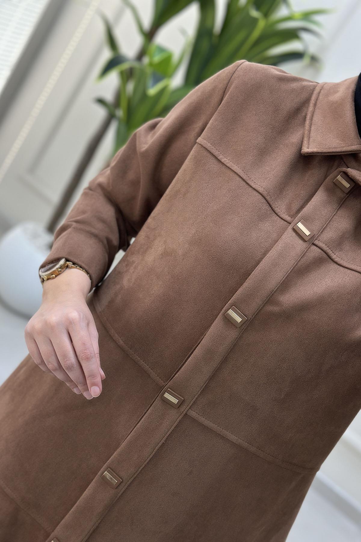 Süet Önü Çıtçıtlı Kolu Manşetli Kadın Giyçık Kap Taba BRL 7210 (BRL-26K7210)