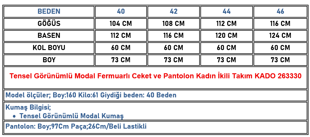Tensel Görünümlü Modal Fermuarlı Ceket ve Pantolon Kadın İkili Takım Lacivert KADO 263330