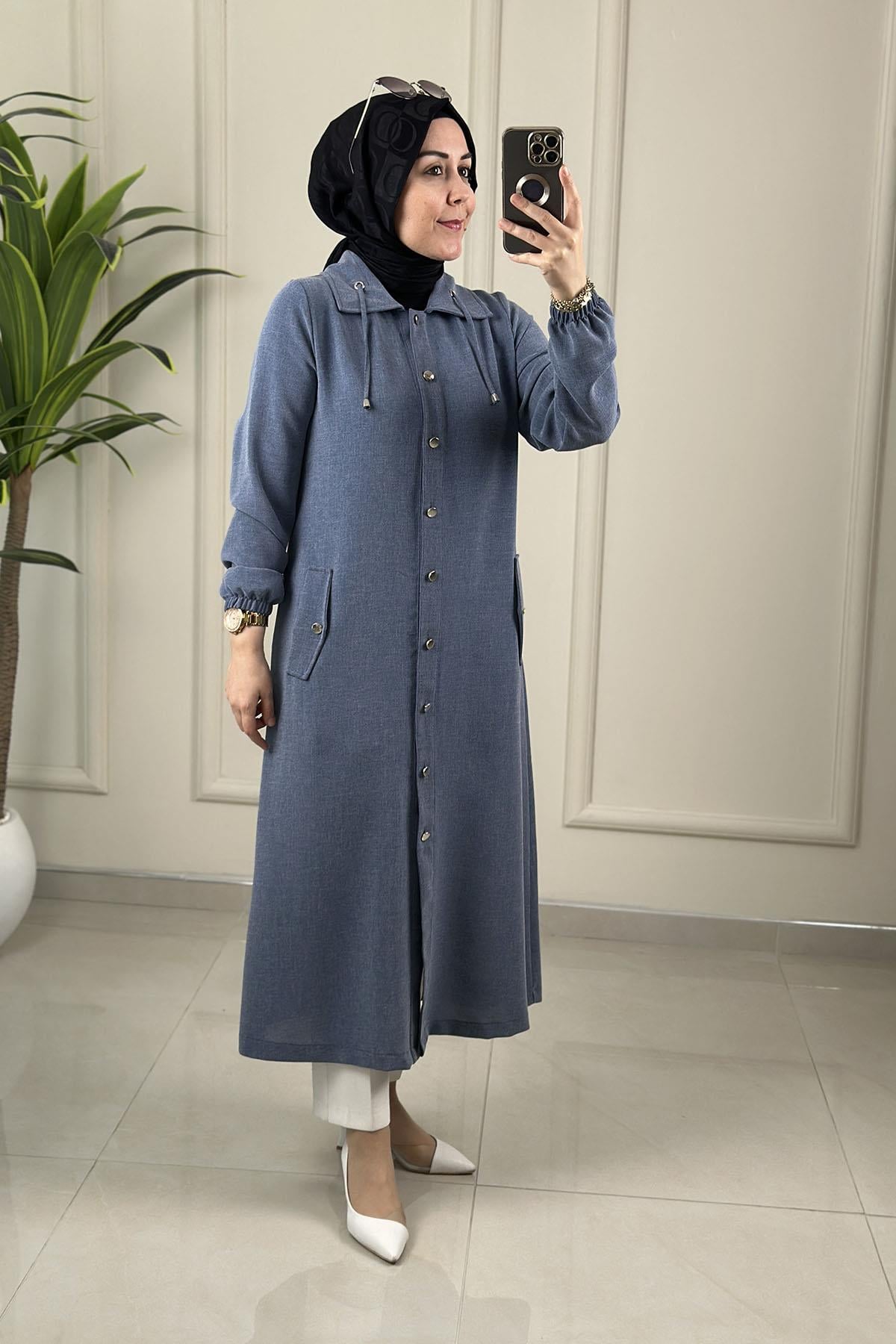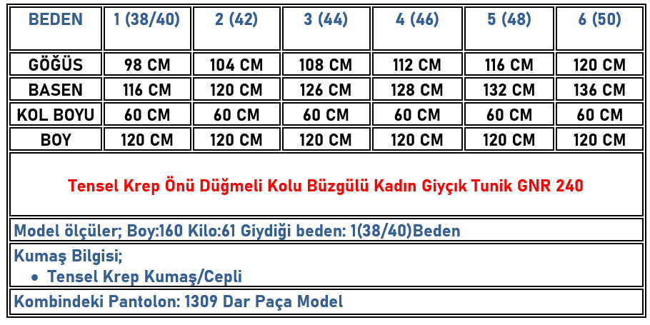 Tensel Krep Önü Düğmeli Kolu Büzgülü Kadın Giyçık Tunik Mavi GNR 240