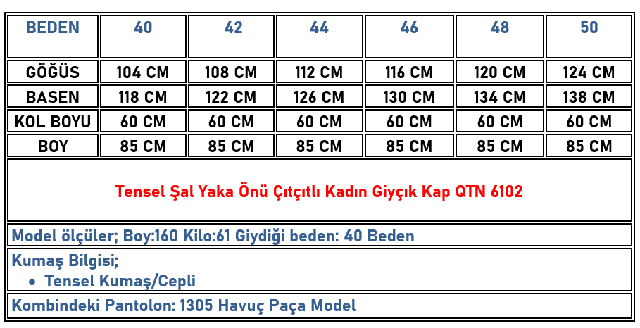 Tensel Şal Yaka Önü Çıtçıtlı Kadın Giyçık Kap Antrasit QTN 6102