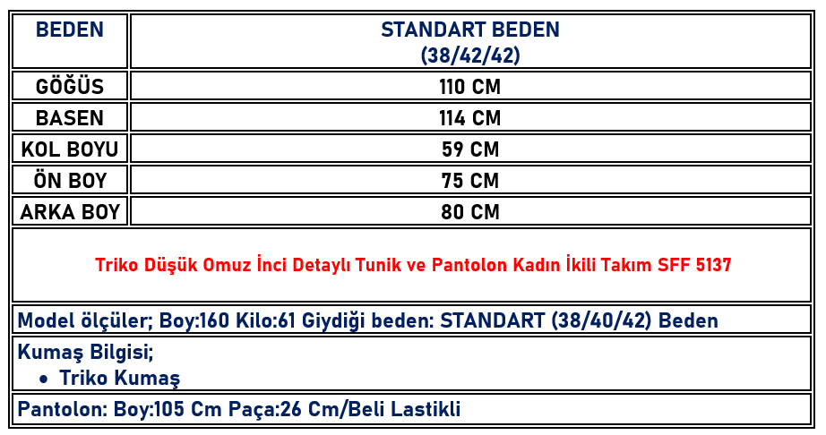 Triko Düşük Omuz İnci Detaylı Tunik ve Pantolon Kadın İkili Takım Siyah SFF 5137 (SFF-26K5137)