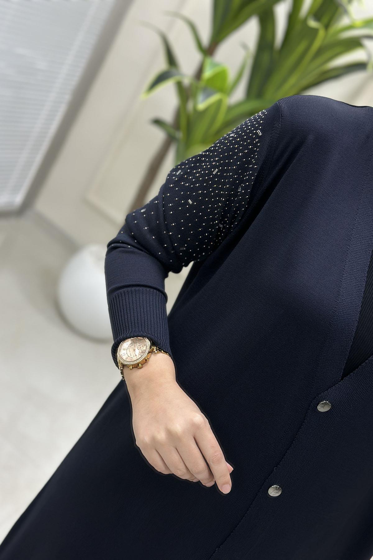 Triko Önü Düğmeli Kolu Taş Detaylı Kadın Uzun Hırka Koyu Antrasit KADO 2725003 (KADO-26K2725003)