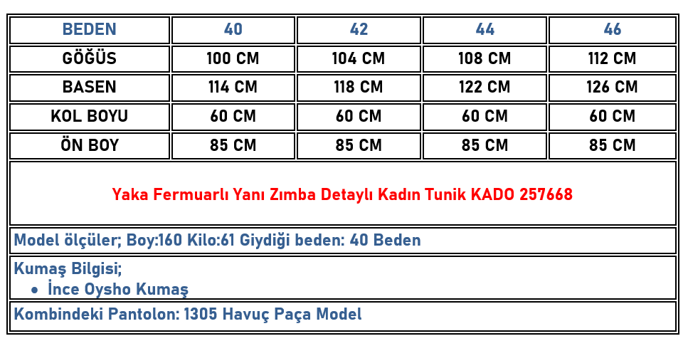 Yaka Fermuarlı Yanı Zımba Detaylı Kadın Tunik Haki KADO 257668