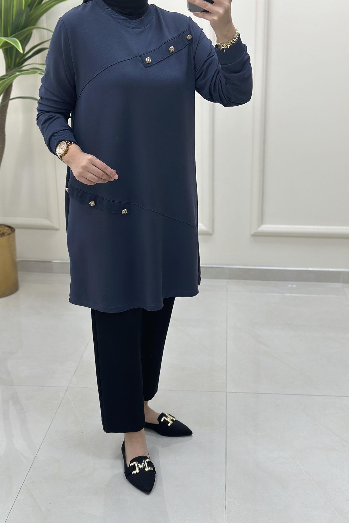 Yaka ve Kol Ribanalı Önü Aksesuar Detaylı Kadın Tunik Antrasit KADO 251091 (KADO-26K251091)