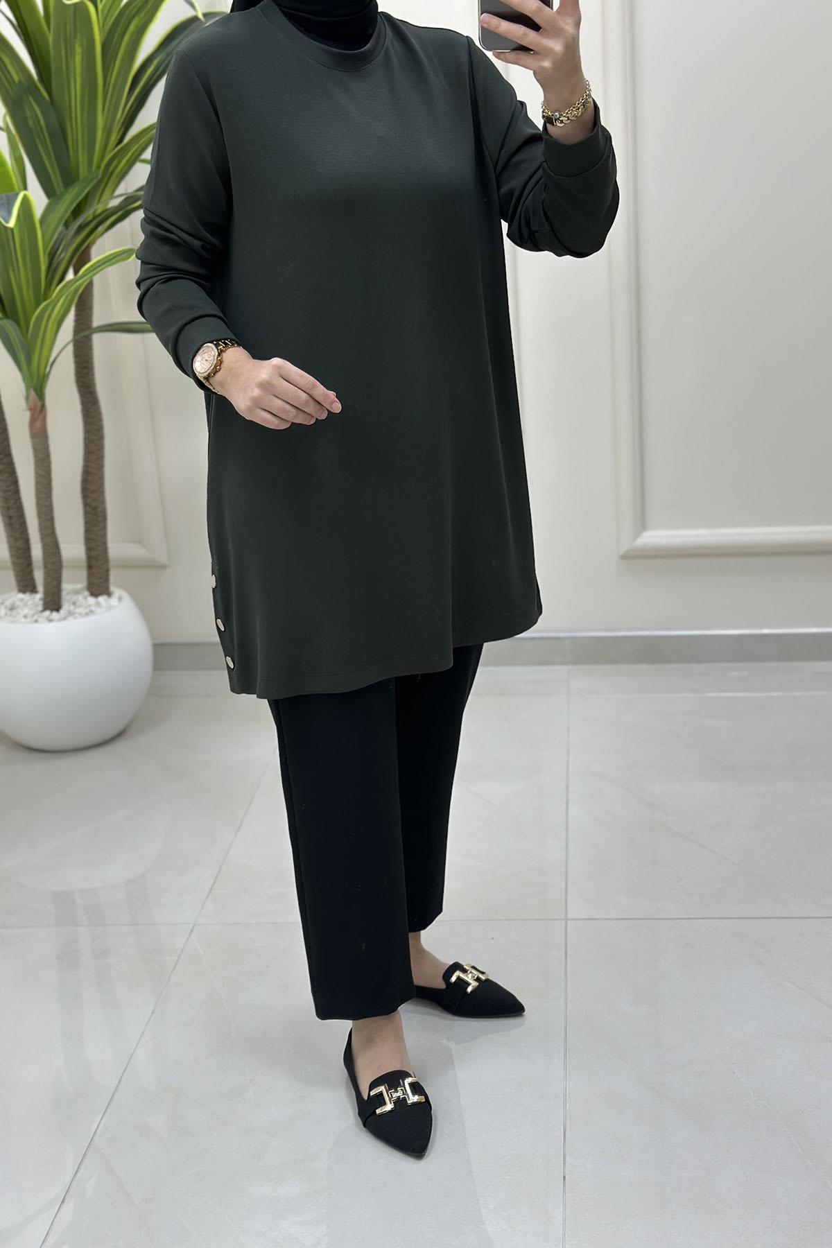 Yanı Yırtmaç Çıtçıt Detaylı Fitilli Kadın Tunik Haki KADO 257304 (KADO-26K257304)