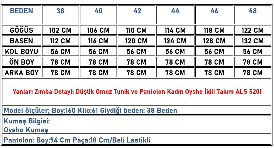 Yanları Zımba Detaylı Düşük Omuz Tunik ve Pantolon Kadın Oysho İkili Takım İndigo ALS 5201 (ALS-26K5201)